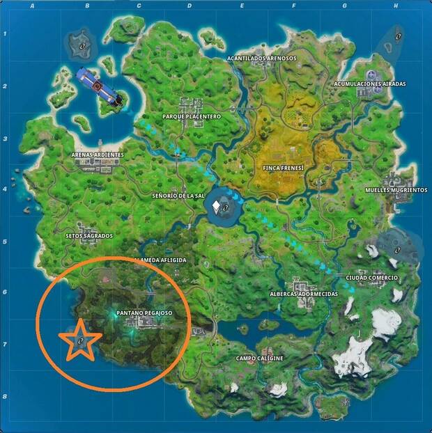 ¿Cómo? Bueno, empieza por buscar La Plataforma, la base de TNTina en la esquina suroested el mapa. es ahí donde vamos a completar el desafío.