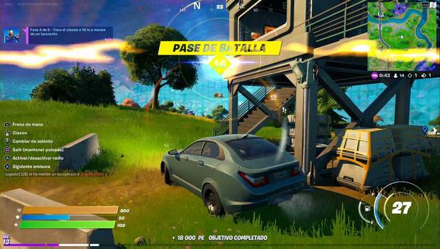 Completar esta misión puede ser complicado. Necesitas coger un vehículo y acercarte a un oponente antes de tocar el claxon (consulta los controles en tu plataforma). Obviamente, esto tiene un fuerte componente de azar, si bien los vehículos son fáciles de encontrar en zonas residenciales (Albercas Adormecidas, Campo Calígine o Parque Placentero, por ejemplo).