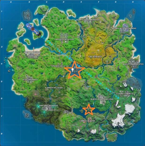 Ahora tenemos que dar con los puentes de acero de colores, que ya conocemos de otros desafíos. Al menos en dos, uno de la temporada anterior y otro de los de Deadpool, hemos visto esos puentes. No tiene ningún misterio, simplemente debes volar por debajo de cada uno de ellos en una o varias partidas. No es ingeniería aeronáutica. Bueno, depende del punto de vista puede serlo...