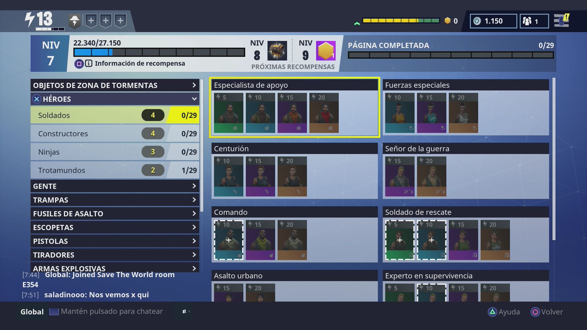 En total hay 116 Héroes divididos en cuatro categorías o clases, Soldados, Constructores, Ninjas y Trotamundos.