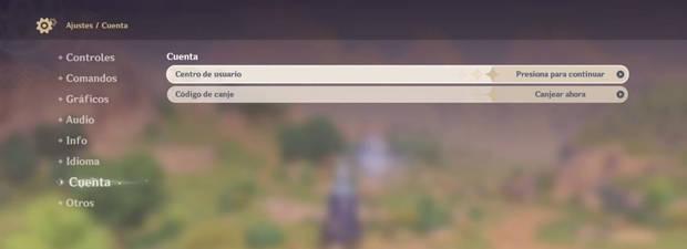 - Una vez cargada la partida, ve al menú Configuración, luego a Cuenta, y entra en el apartado "Centro de usuario".
