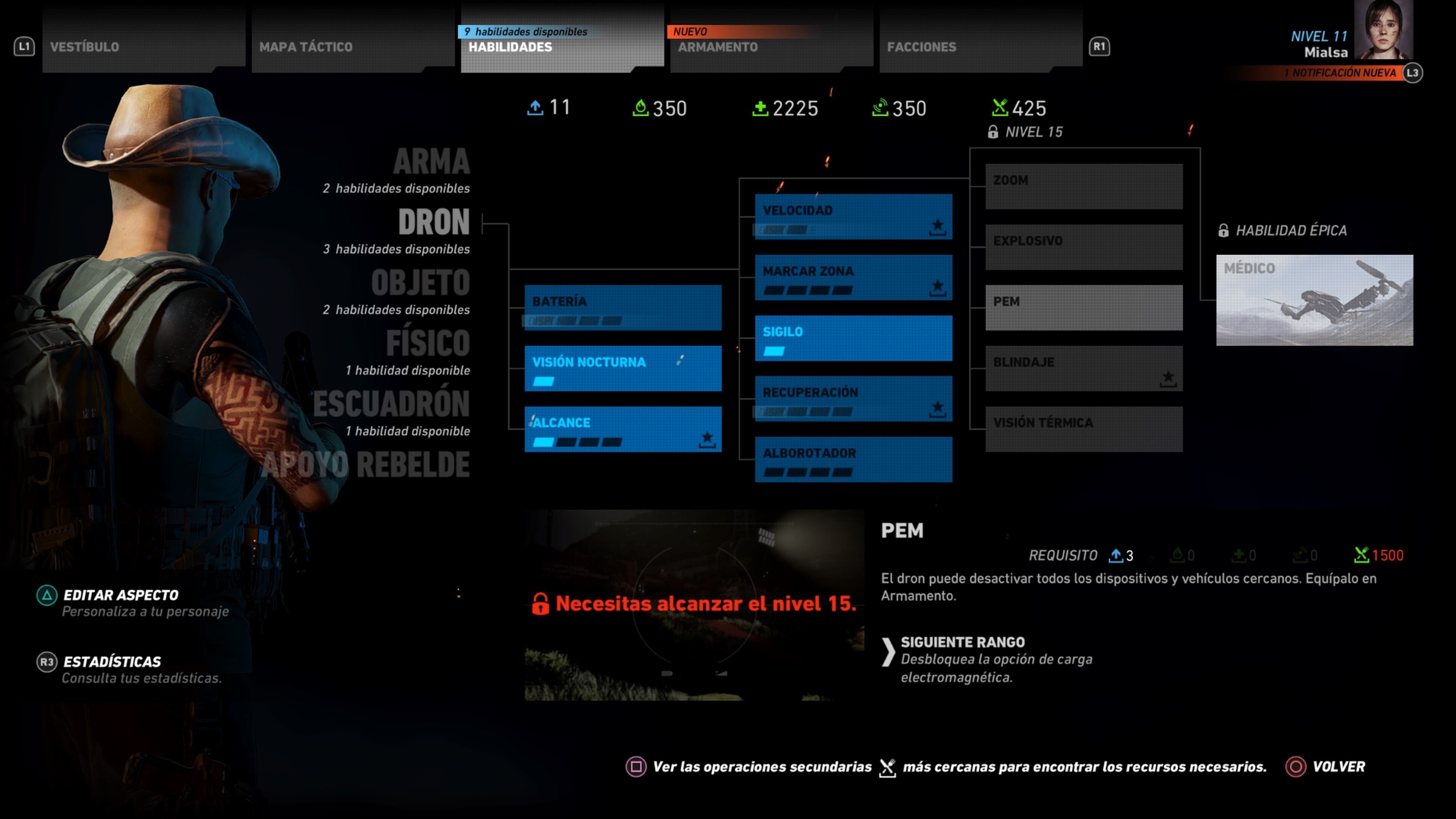 La rama DRON dispone de 13 habilidades normales y una épica orientadas a mejorar el dron y sus capacidades. Algunas de estas habilidades son únicas, sin embargo, otras muchas tienen hasta cuatro niveles de mejora, lo que nos permitirá una mayor especialización.