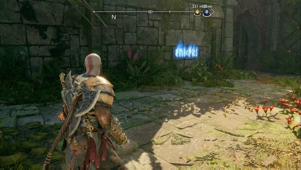 Sigue a Freya, derrota a todos los enemigos y habla con ella. Si quemas las zarzas de la izquierda darás con un atajo. Luego ve con ella y marca la siguiente runa para avanzar. Baja por el atajo, elimina a los enemigos y Freya dirá que falta algo para la runa. Si miras en dirección contraria al puente, verás una puerta a la derechad el túnel por el que llegaste, ve hacia allí.