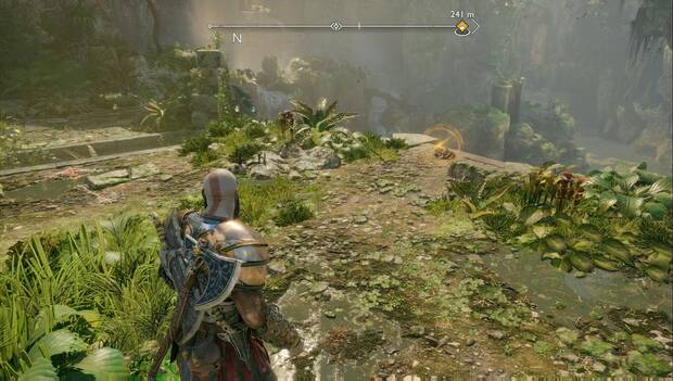 Cuando llegues, simplemente sube hasta la zona del cofre de las nornas de la región y mira en dirección al acantilado, verás el brillo dorado justo al borde.