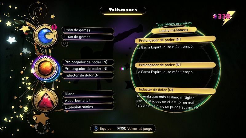 Podemos equipar hasta tres talismanes diferentes, habiendo tres categorías en el inventario, y muy avanzada de la aventura podremos visitar La Fortuna de Pandora, un lugar donde podremos combinar, transformar y reciclar talismanes.