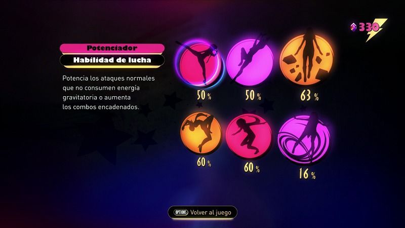 - Habilidades de lucha: potencia los ataques normales que no consumen energía gravitatoria o aumenta los combos encadenados.