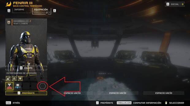 - También puedes escoger tu potenciador en la configuración de tu equipación, justo antes de dar inicio a una misión (su ranura es la que está a la derecha de las cuatro casillas para estratagemas equipables).