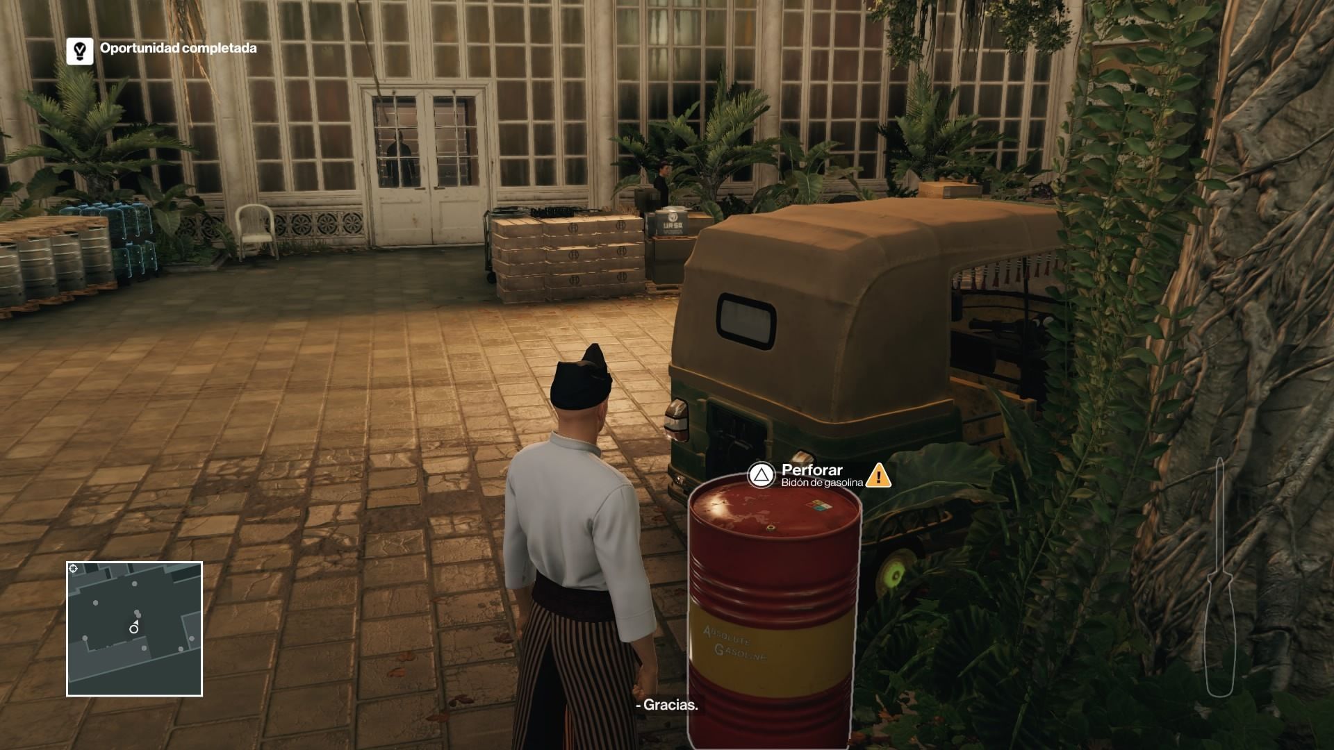 Regresa al patio trasero del hotel y arregla el tuk tuk con la llave inglesa que cogiste antes. Cuando lo hagas, el encargado irá a buscar a Ken Morgan para decirle que su tuk tuk ya está arreglado. Aprovecha ese momento para usar el destornillador y perforar el bidón de gasolina.