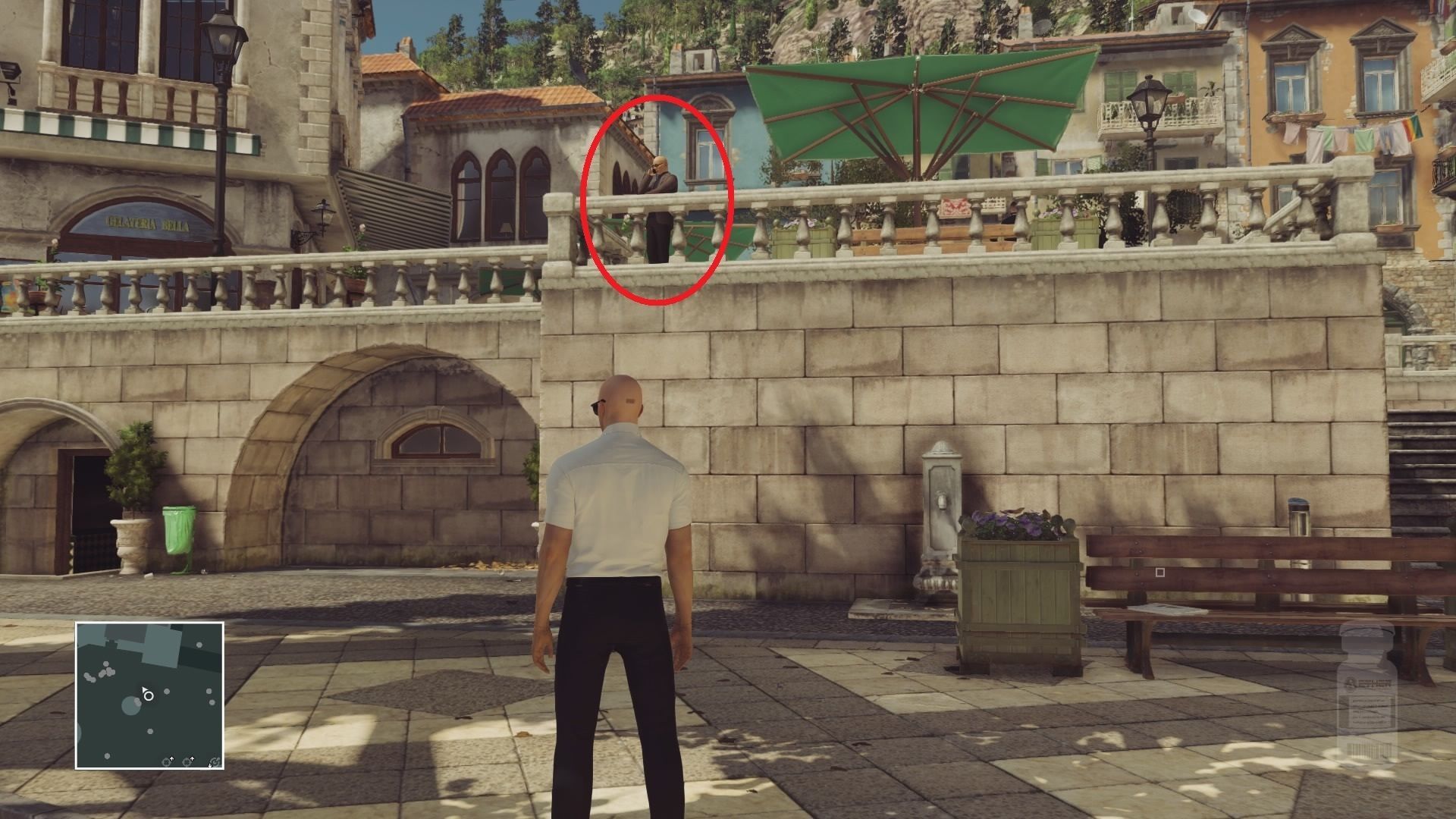 Escucha la conversación y fíjate en la mesa en la que se sienta; ese es el vaso a envenenar. Baja por el callejón tras la heladería y espera a que uno de los camareros salga a fumar. Esconde su cuerpo en el contenedor de basura y vístete con su ropa. Ahora usa la ganzúa en la puerta que queda a la derecha, bajando unas pequeñas escaleras.