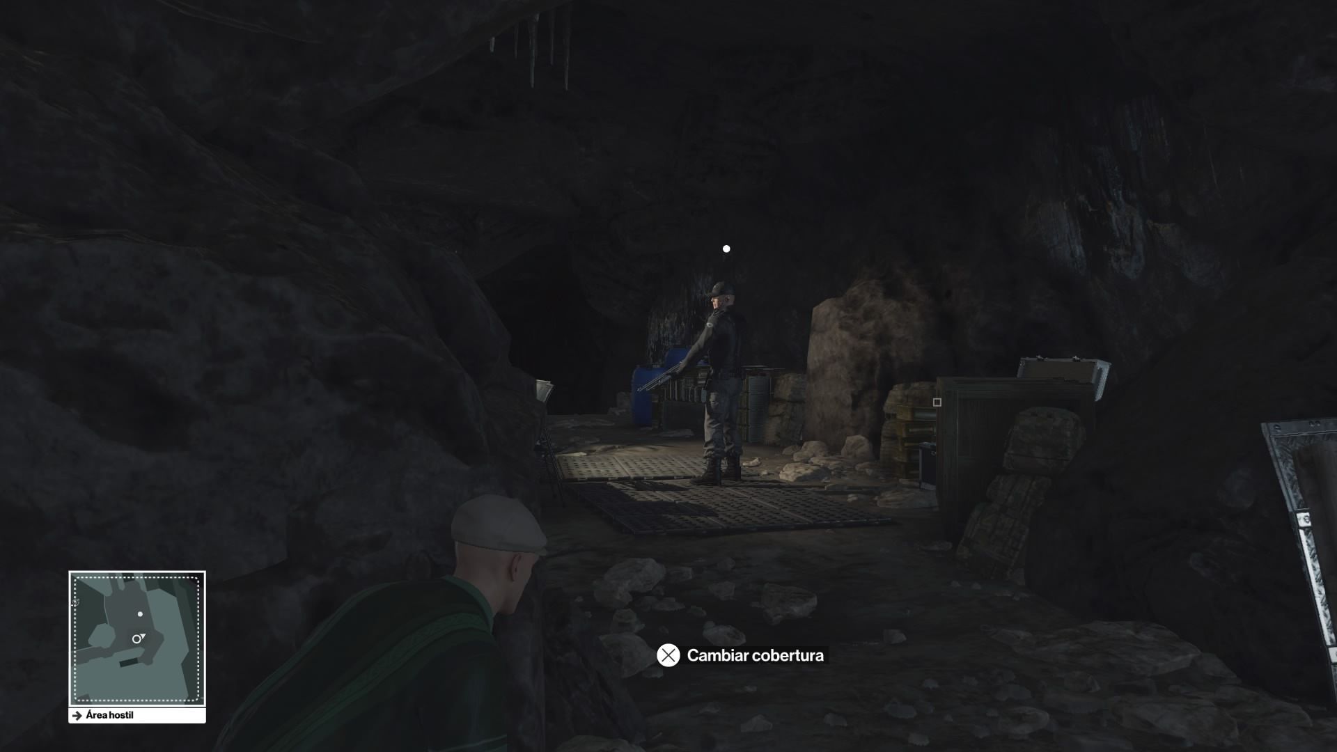 En el siguiente tramo avanza agachado por detrás de las cajas para evitar ser visto por los dos guardias y sigue recto hasta el otro lado, donde verás a un científico y a otros con biotrajes. Cuando sea seguro, llama la atención del científico y atráelo hasta la caja más cercana para acabar con él.
