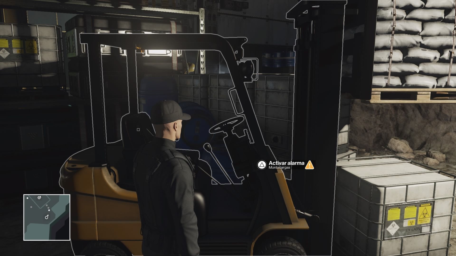 Desvíate hacia la derecha, donde hay un montacargas con un guardia que te puede reconocer. Activa la alarma para llamar la atención del guardia y aprovecha ese momento para cruzar por donde te impedía pasar.
