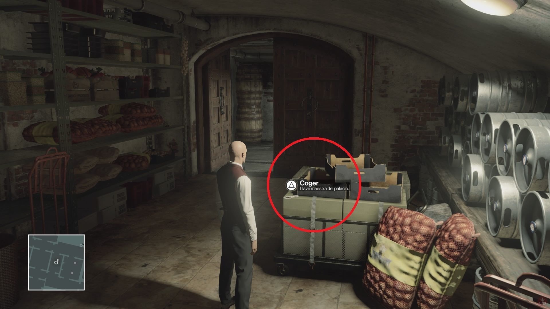En planificación de la misión cambia la ubicación inicial a infiltrado en cocina para obtener el disfraz de Personal de palacio automáticamente. Busca la llave maestra de palacio en el sótano.