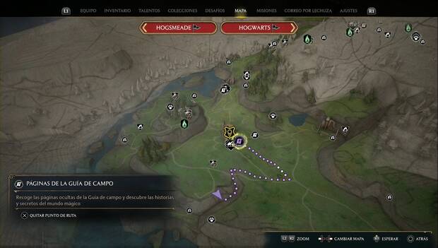 - Las páginas de Las Highlands (fuera de Hogwarts y Hogsmeade) aparecen marcadas en el mapa, por lo que simplemente señalaremos sus ubicaciones.