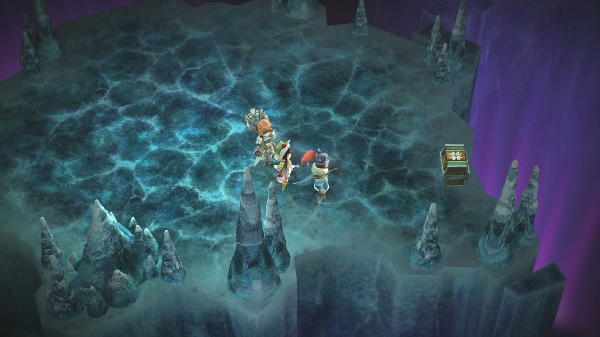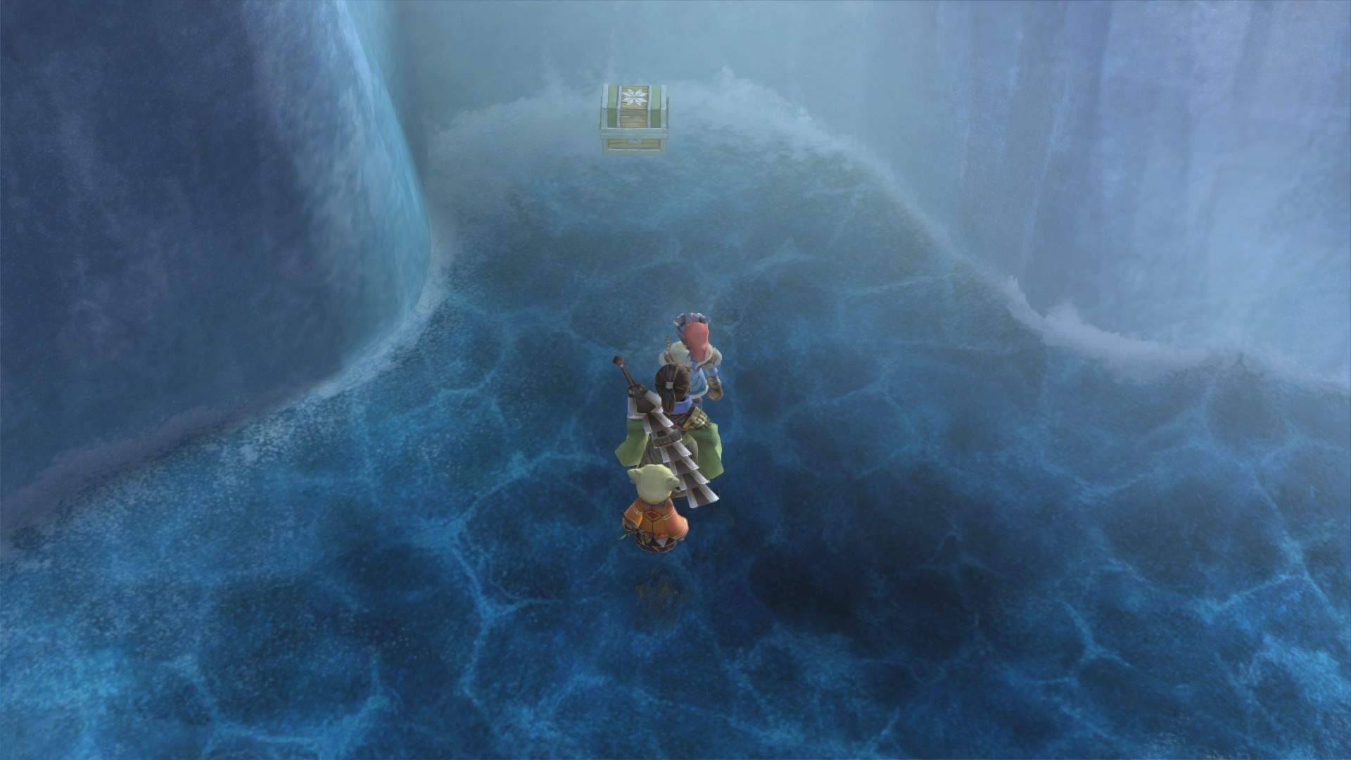Equipa el chakram que acabas de conseguir a Setsuna. Da media vuelta y sigue hacia el sur para encontrar otro cofre (Hi-Ether x4).