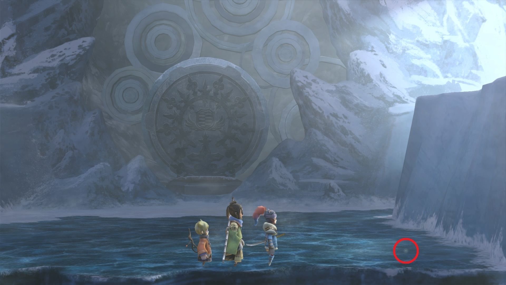 Inspecciona el gran emblema de roca que tienes al fondo. Márchate por la salida de la derecha. Derrota a los enemigos y registra otro shining spot.