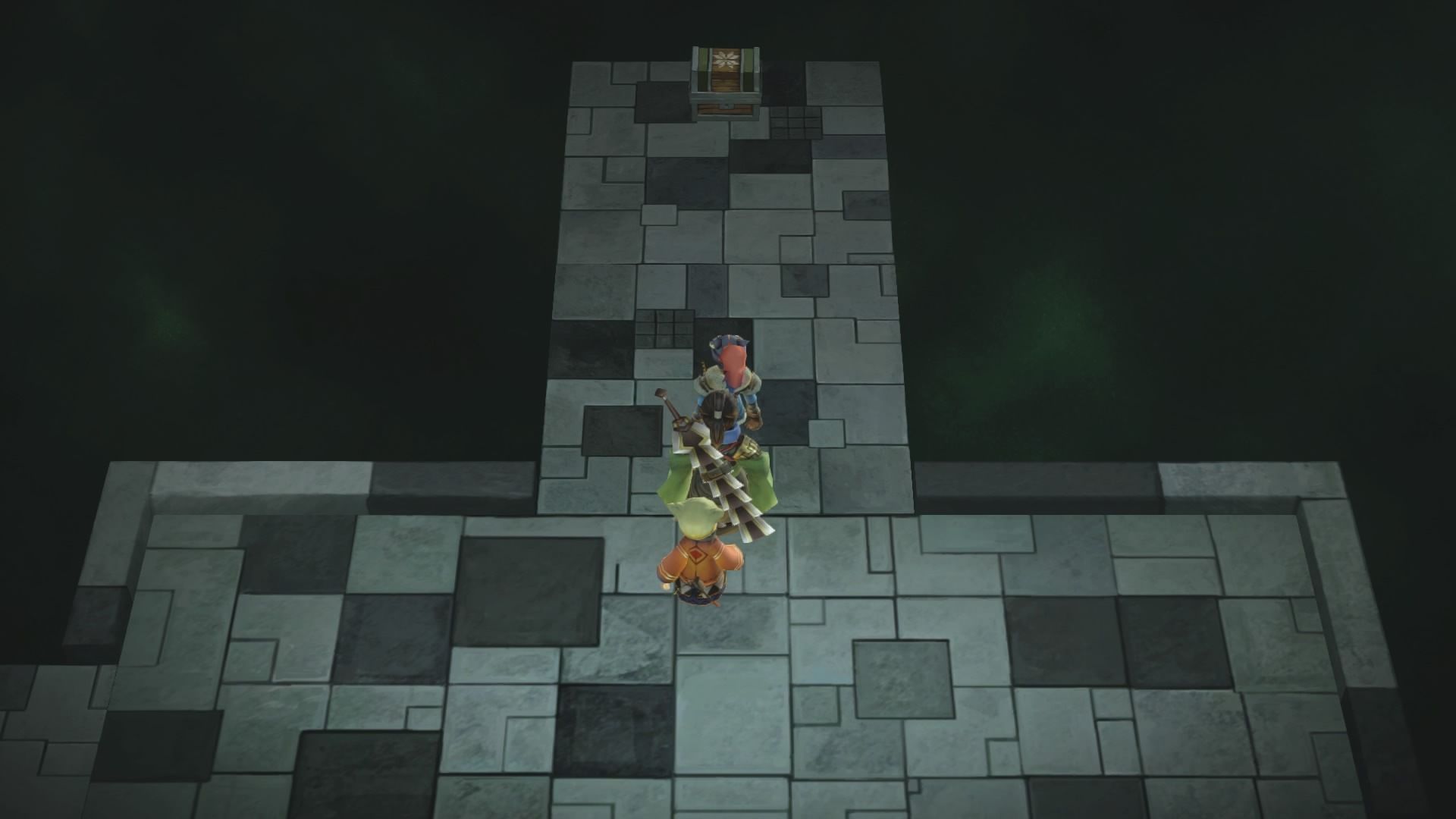 Pronto verás otro lugar en el que te harán la última pregunta. Intenta activar antes el interruptor que forma el atajo hasta aquí. En esta ocasión, la respuesta que debes dar es "......". Sube las escaleras, guarda partida y prepárate para un combate durillo. Al terminar te será otorgada la World Key, una llave capaz de abrir todos esos cofres plateados que has ido viendo hasta ahora y las ruinas que permanecían selladas.