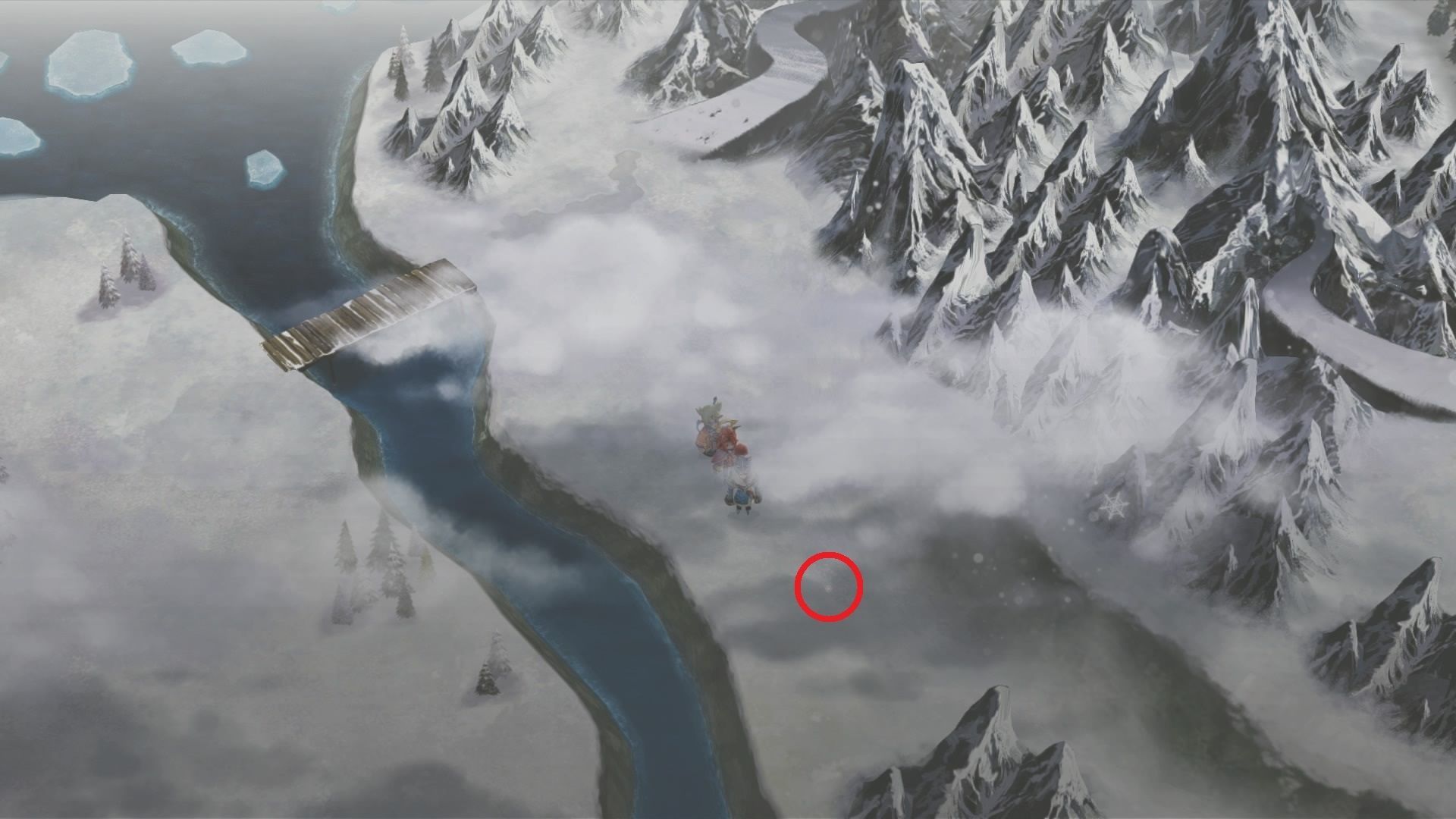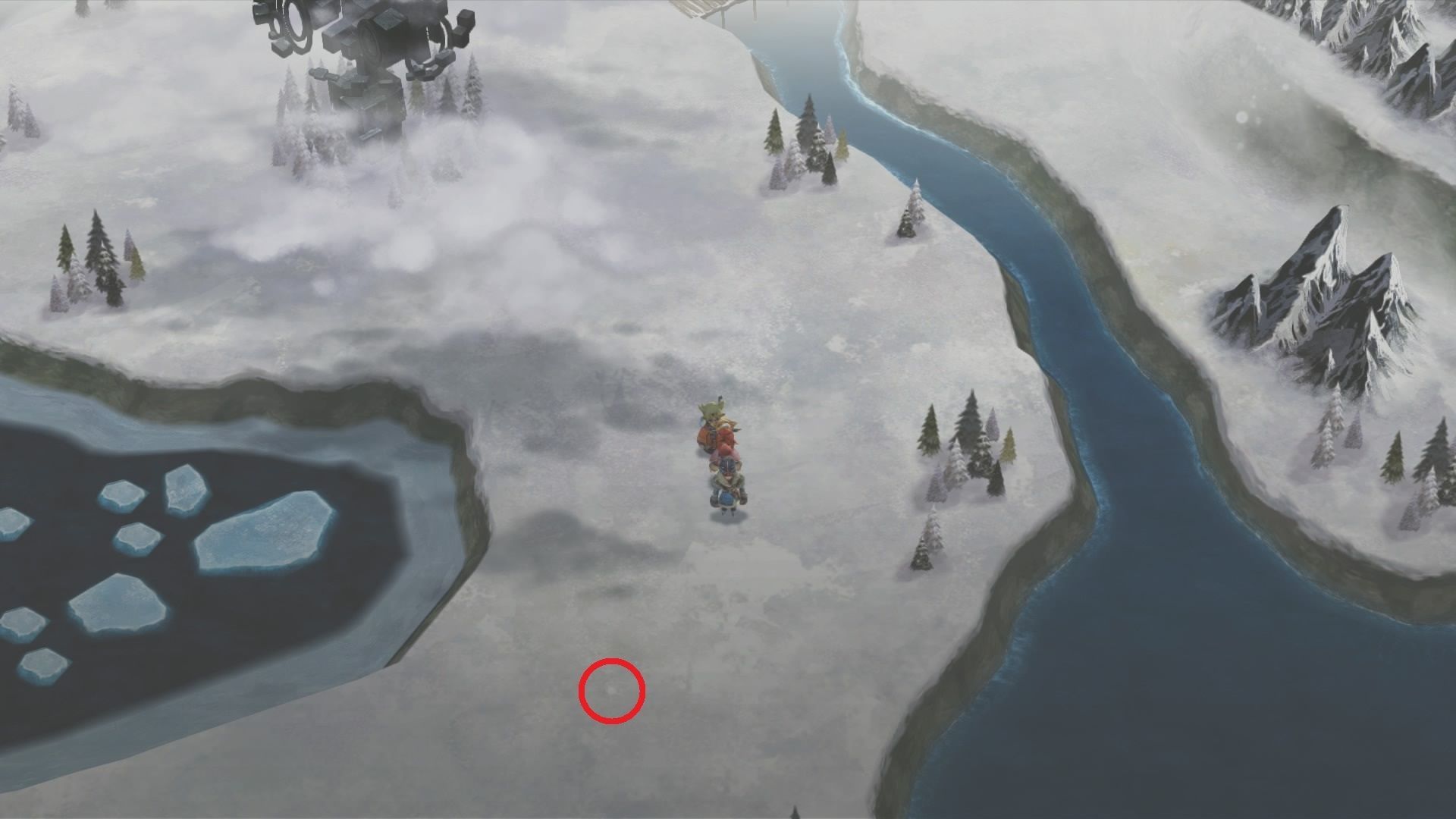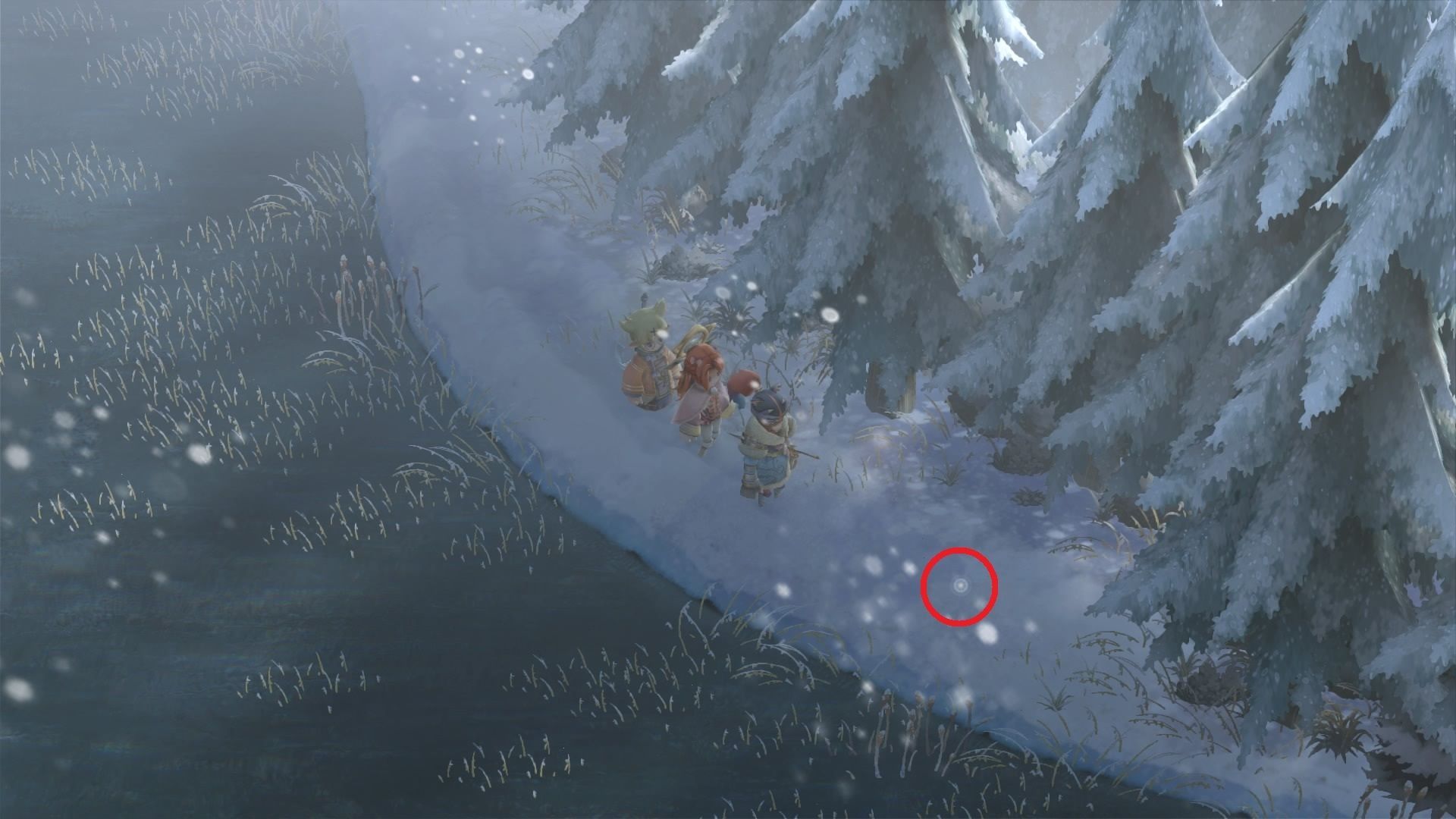 Entra en la carpa de Hydor y habla con él. Luego regresa con Kir. Al acabar la conversación, ve hacia el lado derecho de la entrada para encontrar al pequeño escondido tras una tienda de campaña. Cuando hayan pasado los monstruos, ve a ver a Setsuna. Ahora tendrás que salir del poblado por el camino del noreste y entrar en Spritnite Pillar.