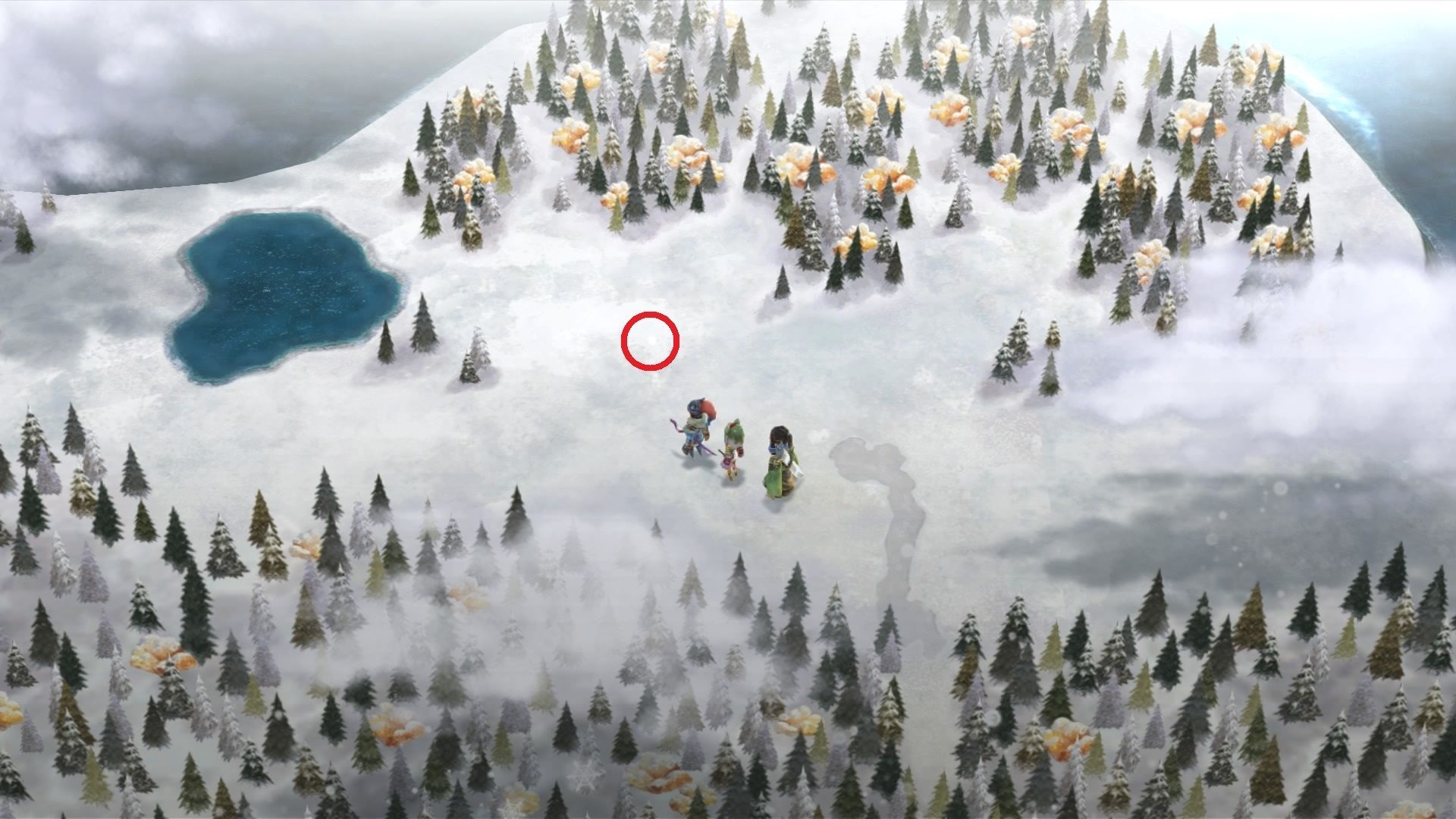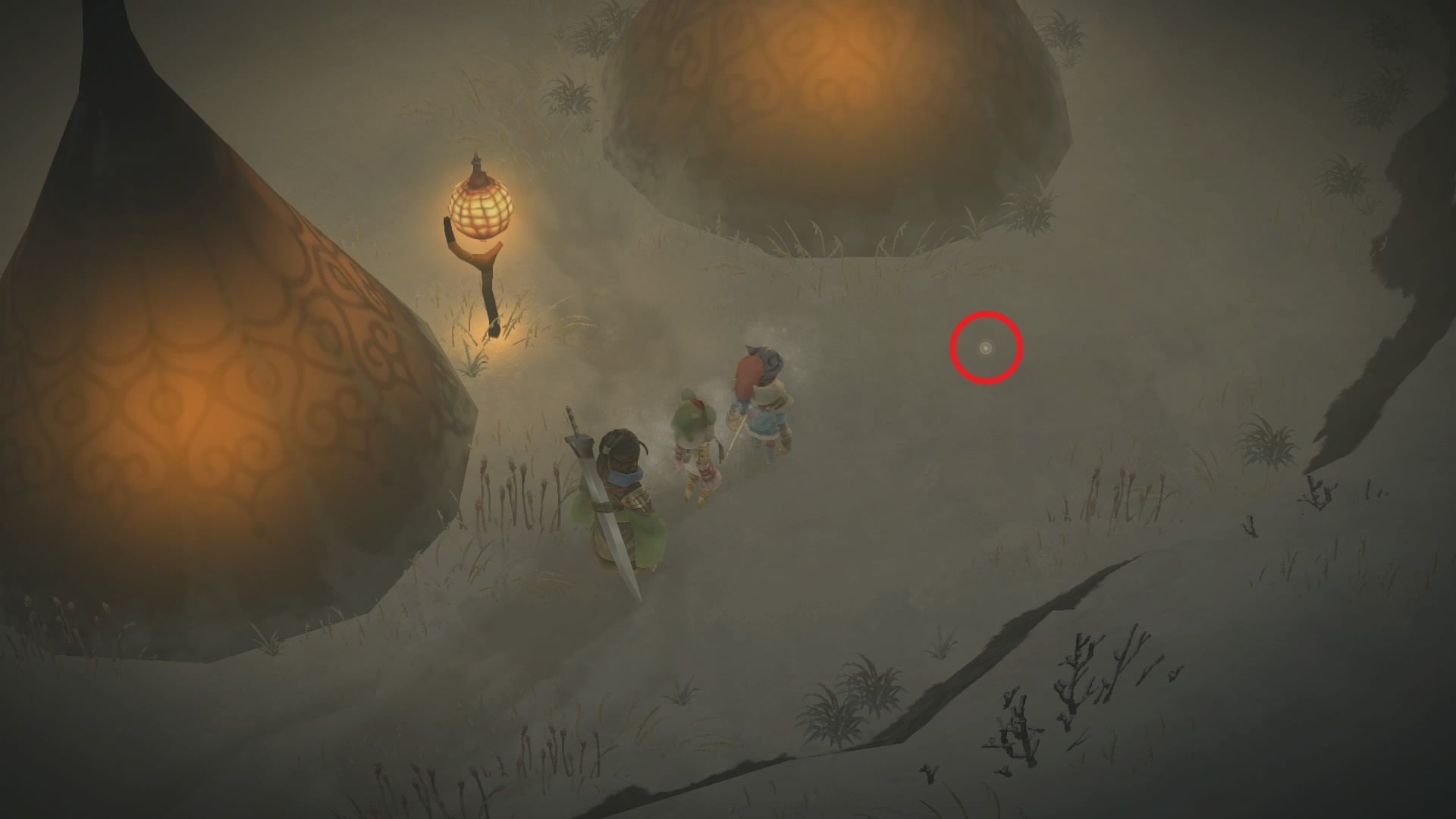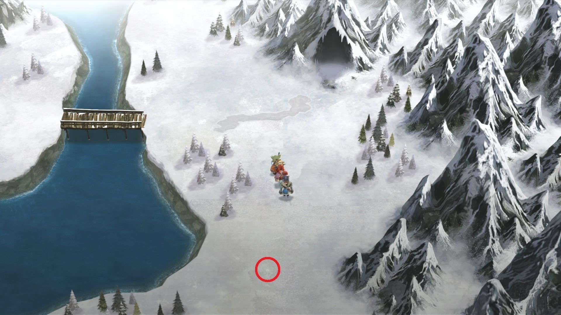 Entra en la carpa de Hydor y habla con él. Luego regresa con Kir. Al acabar la conversación, ve hacia el lado derecho de la entrada para encontrar al pequeño escondido tras una tienda de campaña. Cuando hayan pasado los monstruos, ve a ver a Setsuna. Ahora tendrás que salir del poblado por el camino del noreste y entrar en Spritnite Pillar.