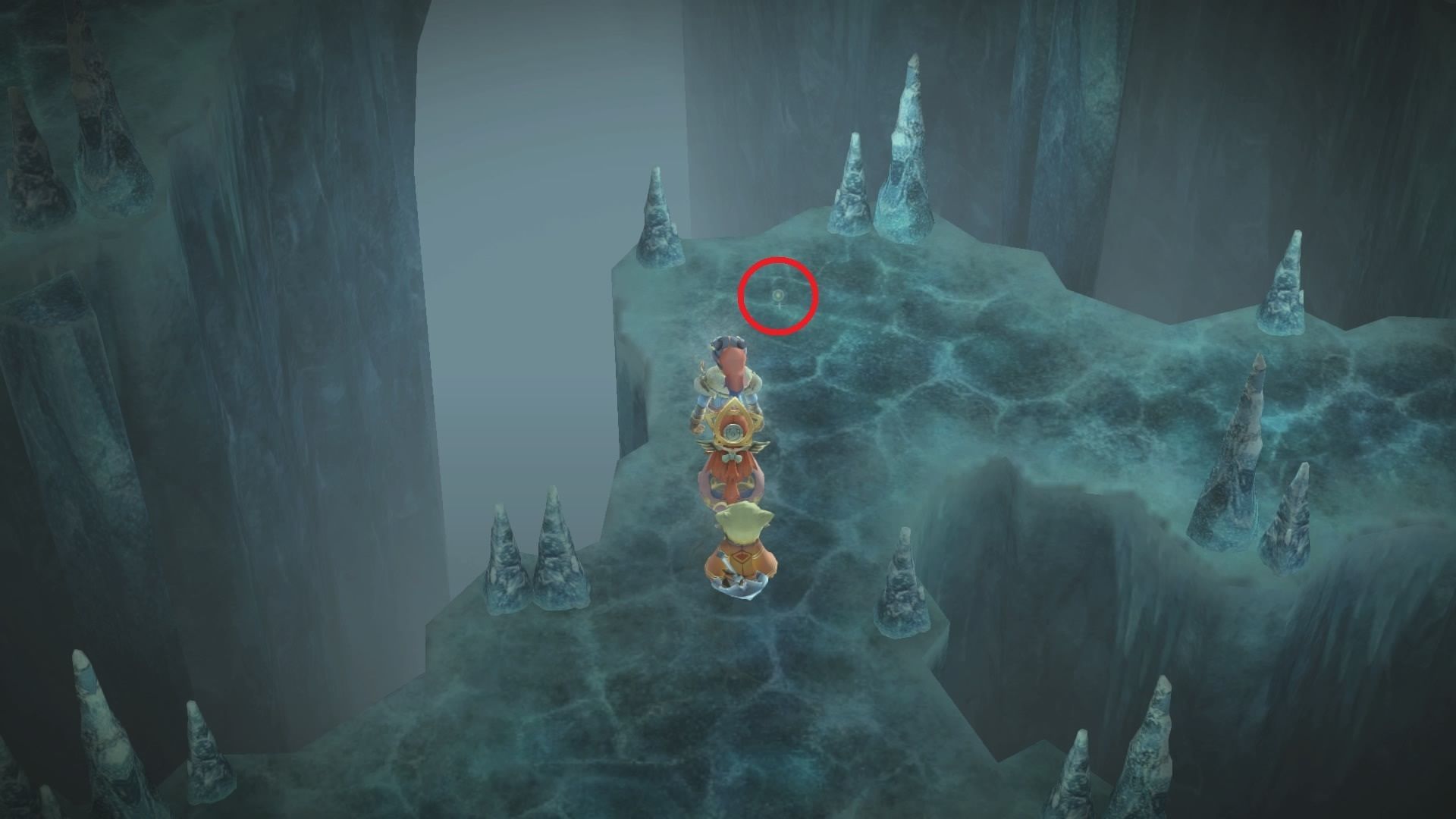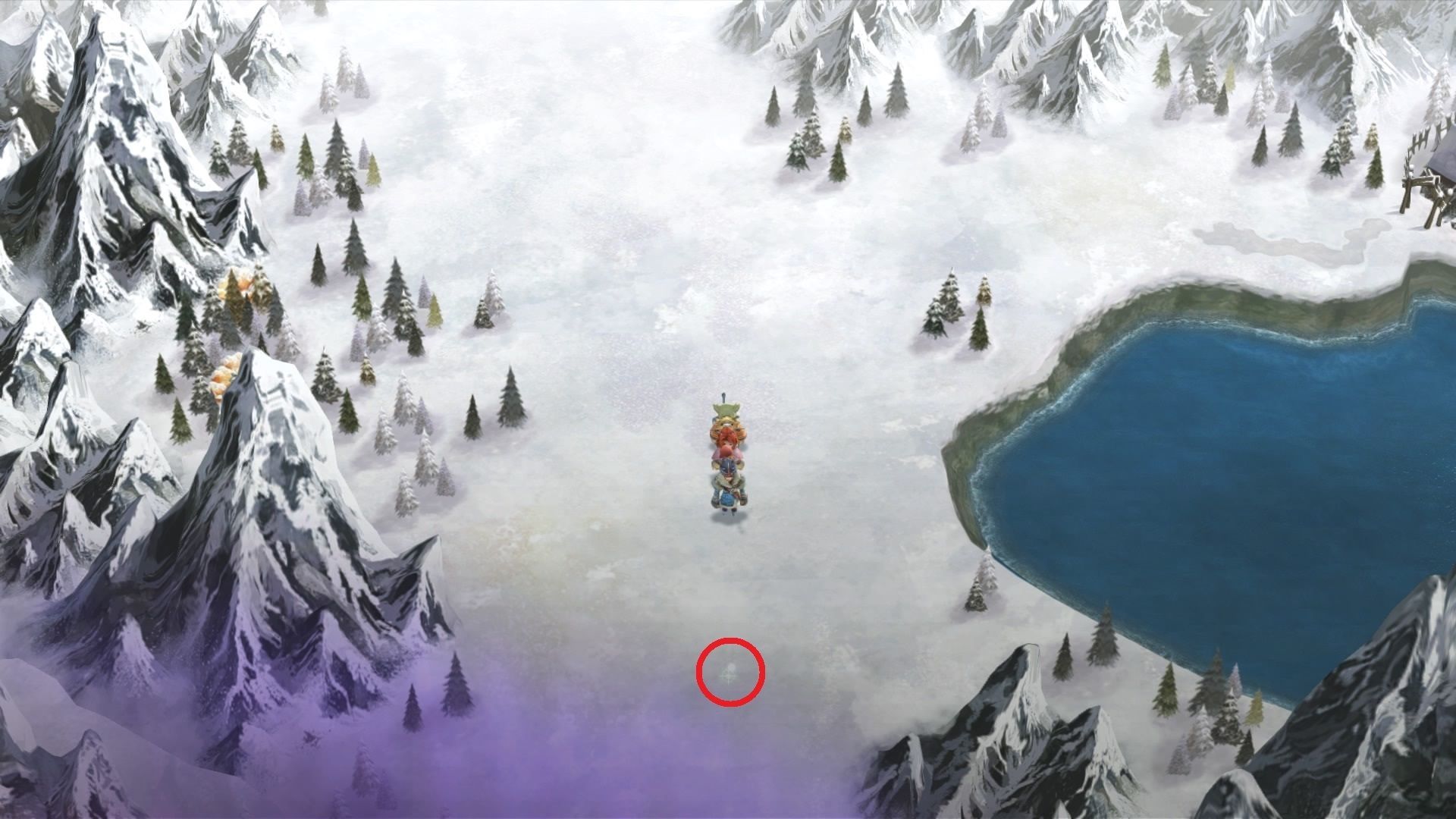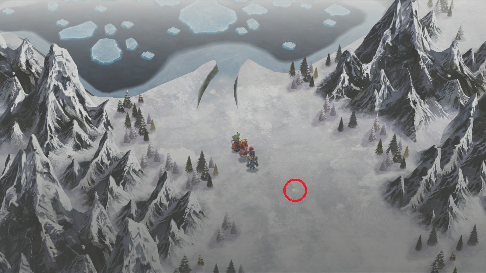 Siguiendo el camino, atraviesa la ilusión en la montaña y, tras derrotar al siguiente grupo de enemigos, hallarás un shining spot.