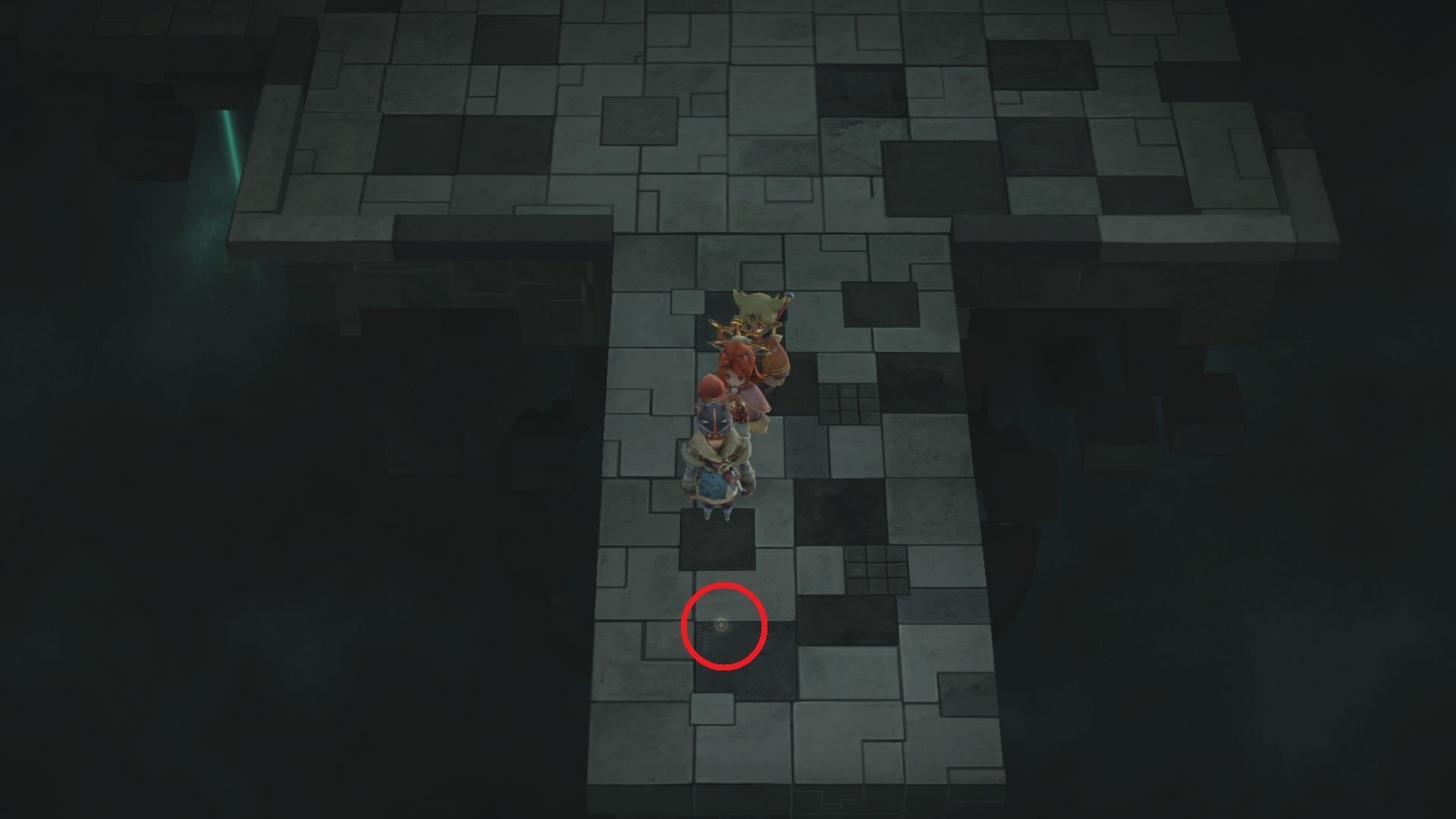 Ve en dirección oeste, sube la escalinata y cambia de zona. En la intersección, baja por la izquierda y activa el interruptor. Luego ve por la otra escalera, derrota a los enemigos y verás un shining spot.