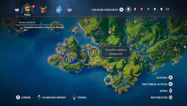 Este Desafío mítico se encuentra en el Valle de la Eterna Primavera, en la zona suroeste de la región, en la península de esta parte. Tienes que ir al oeste del Refugio de Eros para dar con el tablero y el mapa de esferas.