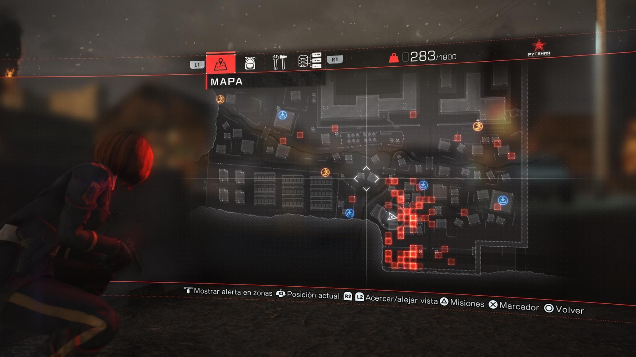 A la hora de elegir la ruta, puesto que el mapa no revela posiciones de enemigos o los letales Wanzer, esta visión nos da pistas de dónde podremos encontrar grupos enemigos cerca de puntos de guardado y otros lugares de interés. Pero no bajes la guardia nunca, esto es una idea aproximada de los lugares más conflictivos, habrá soldados en más zonas.