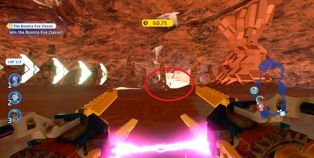 - Este minikit está casi al final de una vuelta, poco antes de llegar a la línea de meta, lo puedes ver pegado a la montaña que hay a tu izquierda.