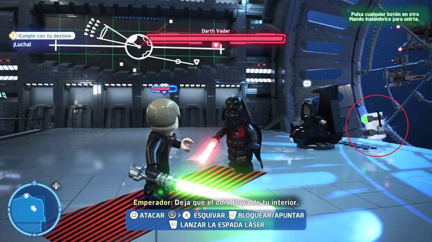 - Deja que el odio fluya libre dentro de ti: causa daño a uno de los guardias de Palpatine al atraerlo hacia uno de sus ataques (espera a que Palpatine vaya a arrojar uno de sus rayos y entonces muévete cerca de uno de los guardias para que el ataque le caiga encima).