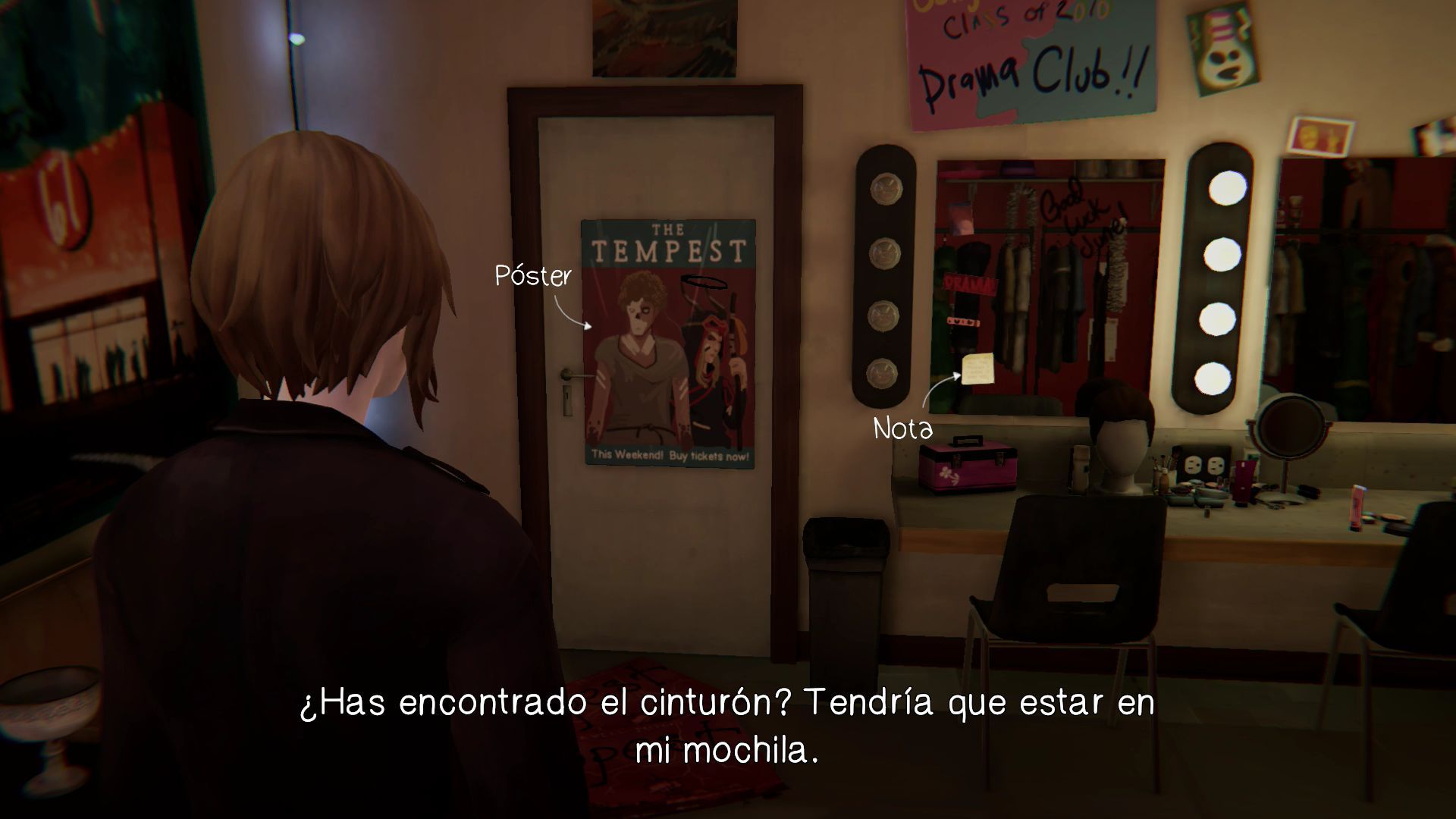 Ya dentro del instituto espera a que Rachel te pida que le lleves el cinturón que hay en su mochila. Cuando llegues a los camerinos examina el poster que verás en una puerta.