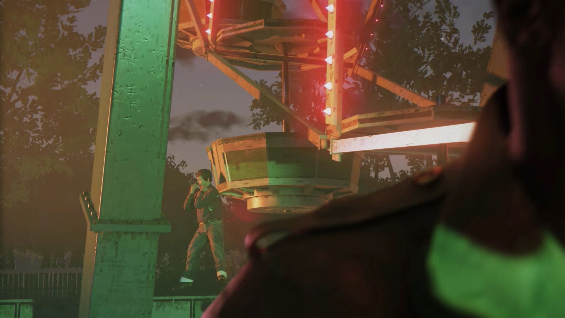 Más adelante llegarás a una atracción de coches de choque en la que serás emboscado por más guardias. Al salir de la atracción tendrás que avanzar varios tramos más hasta entrar en una casa del terror en la que verás a Ritchie y tendrás que perseguirle.