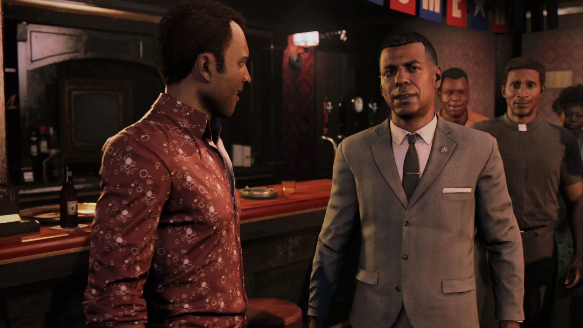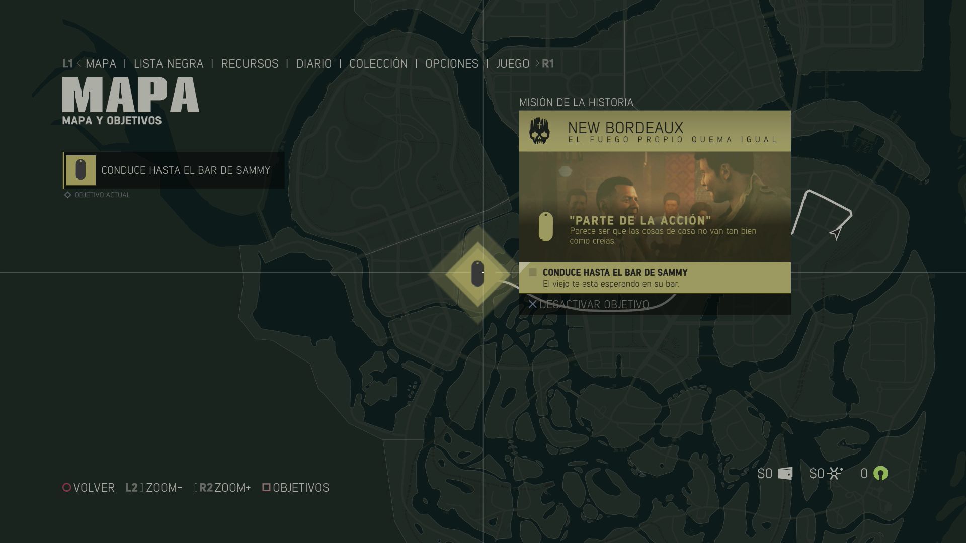 Esta misión comienza con una escena. Cuando acabe abre el mapa y elige como destino el punto de la misión y conduce hasta el bar de Sammy. Al entrar en el bar tendrás una escena.