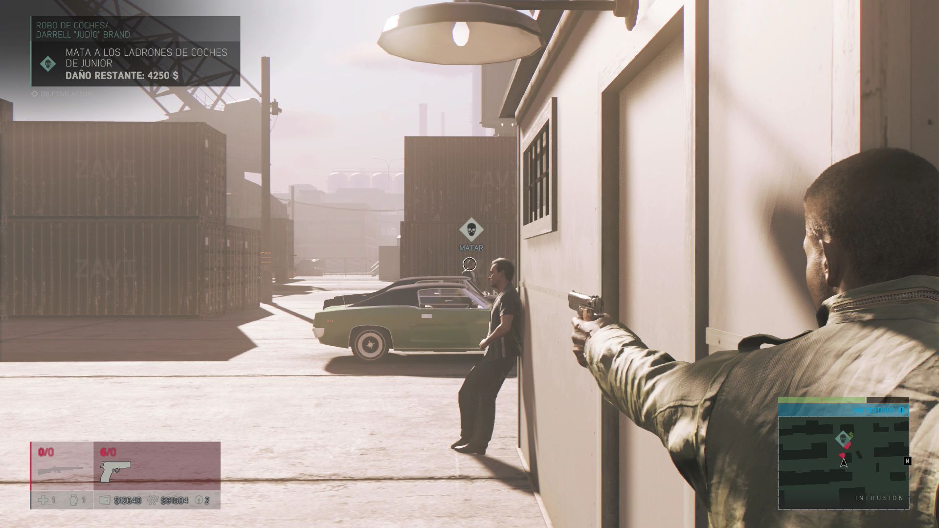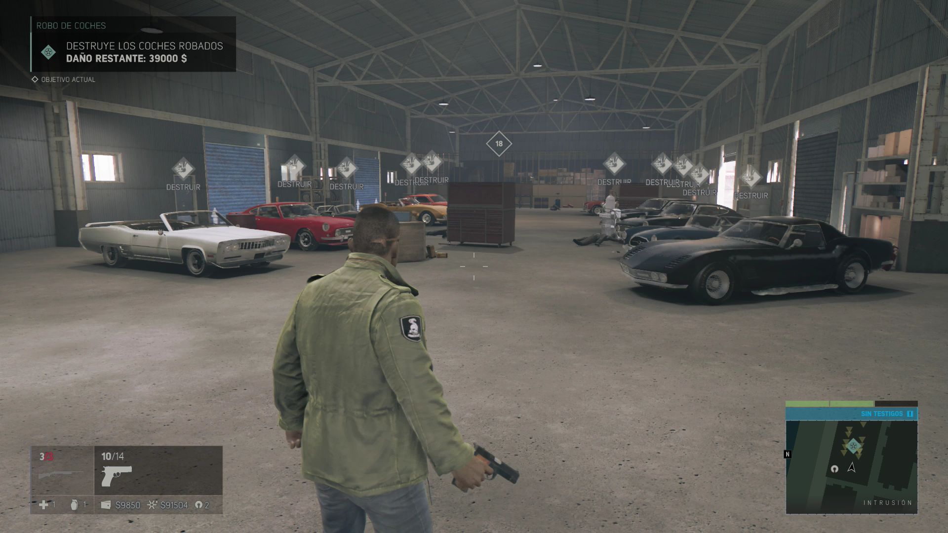 El primer paso en esta misión será el de ir a destruir unos coches robados. Los encontrarás dentro de un almacén que está custodiado por unos guardias.