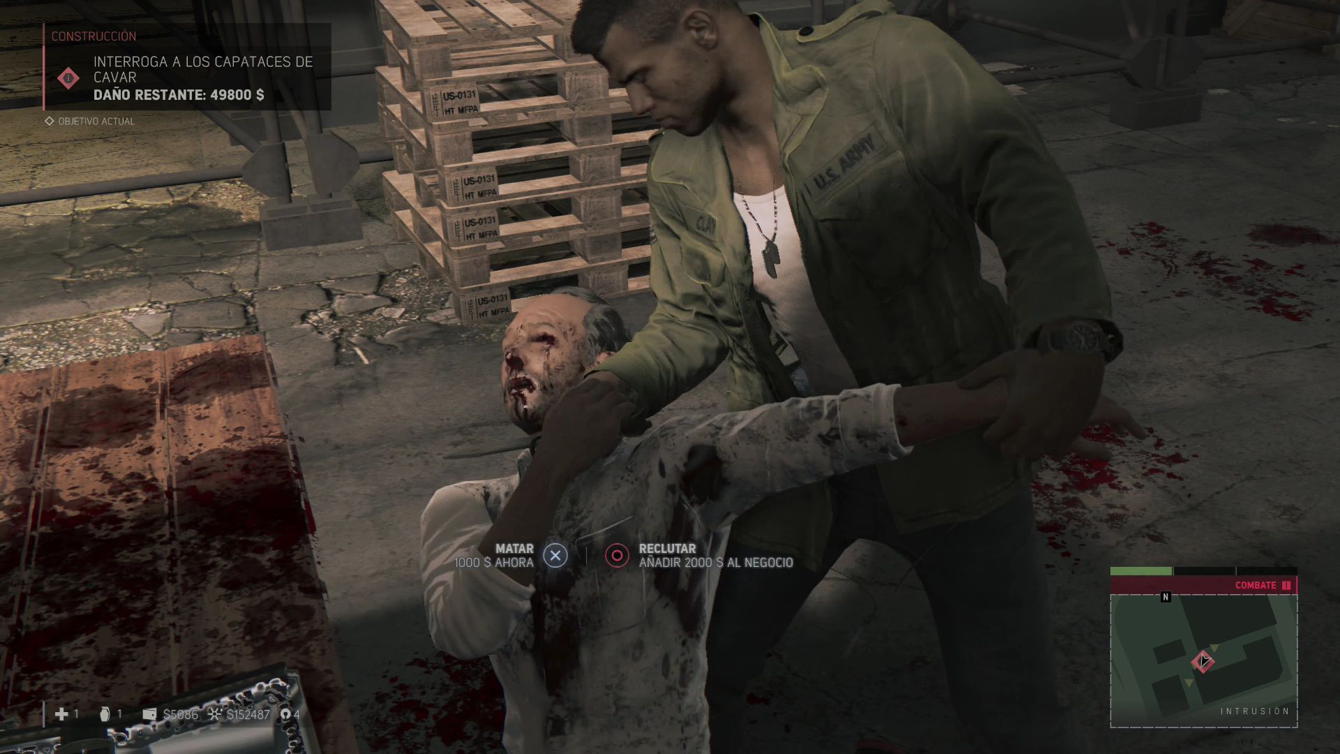 Cuando hayas causado los gastos necesarios vuelve a hablar con Lennie Davis para conseguir la localización de Cava. Ve a la posición que te indican y prepárate para una de las zonas más complicadas del juego. Los primeros guardias de la zona están justo en la calle y será muy complicado acabar con ellos sin que algún transeúnte llame a los policías. El edificio en construcción también está repleto de guardias, debes avanzar por el piso más alto y cruzar al otro extremo para subir una escalera que te lleva a la zona donde esta Cava. Acribíllale y luego remátale cuerpo a cuerpo.