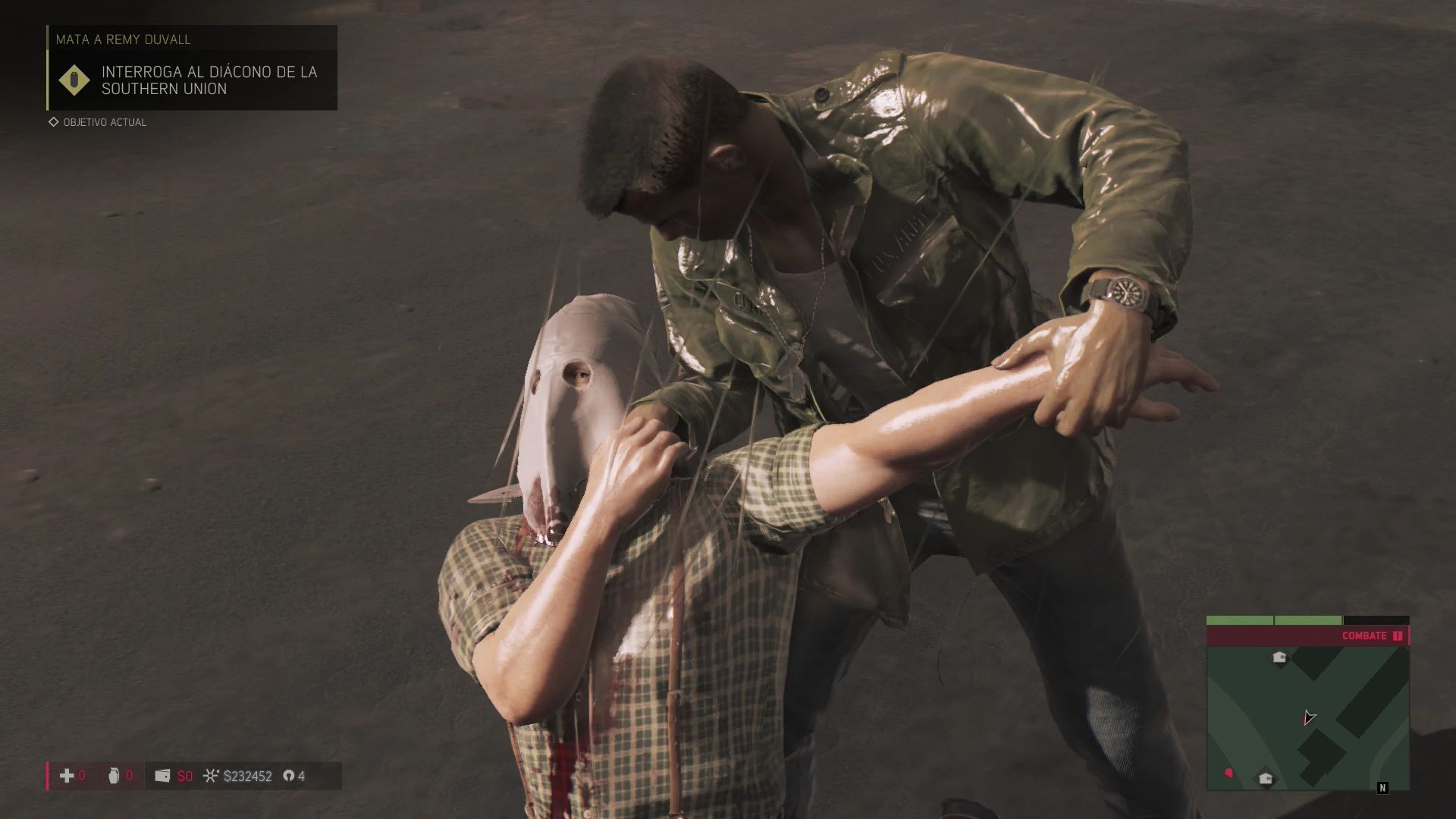 Gracias al interrogatorio habrás conseguido la localización de Remy. Ve al punto de encuentro y busca una buena posición porque tendrás que acabar con todos los soldados. Todos llevan armas muy dañinas por lo tanto no dudes en quedarte lo más atrás posible y disparar a ciegas. Cuando ya solo quede Remy acércate cuerpo a cuerpo para rematarle.