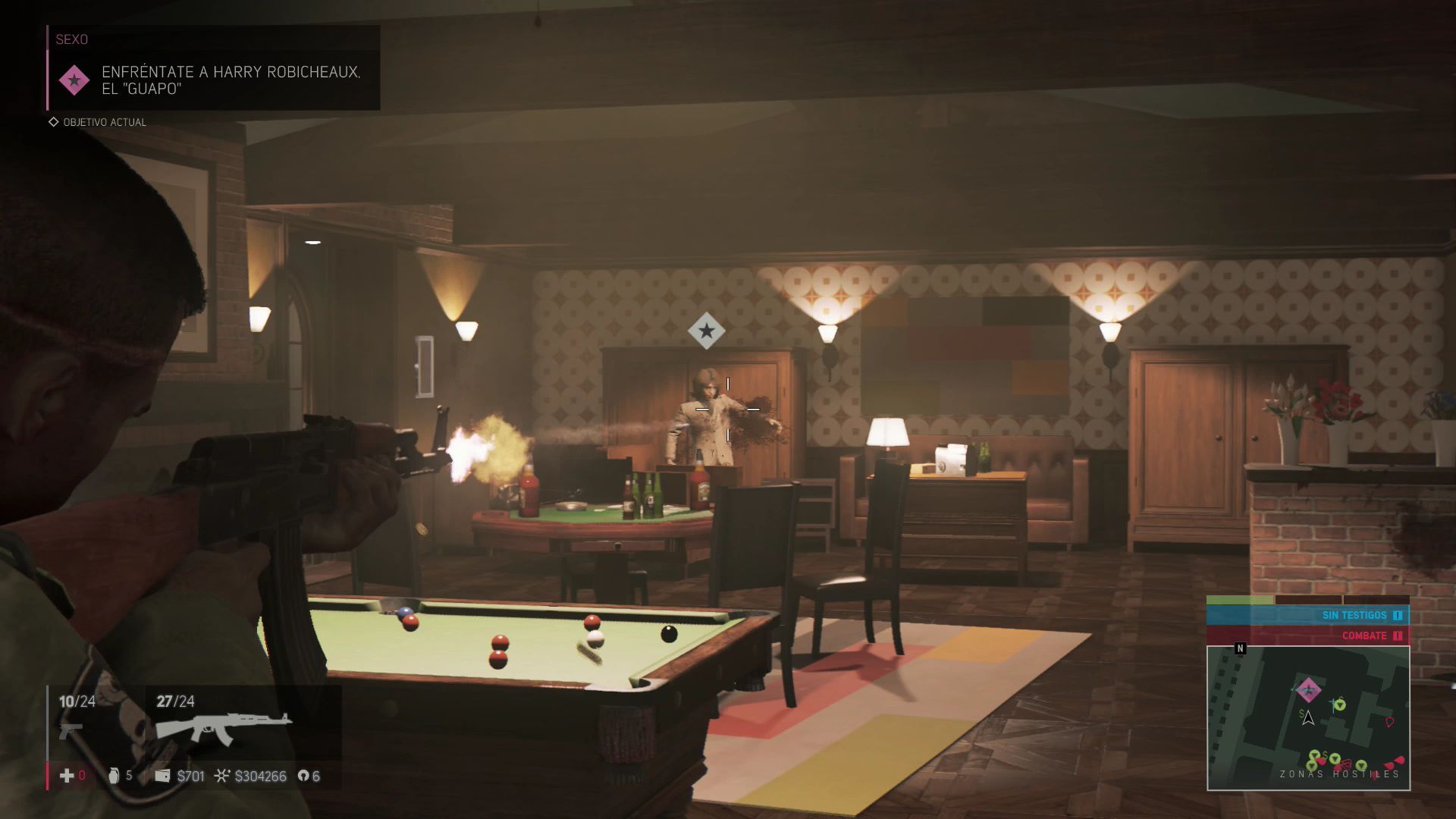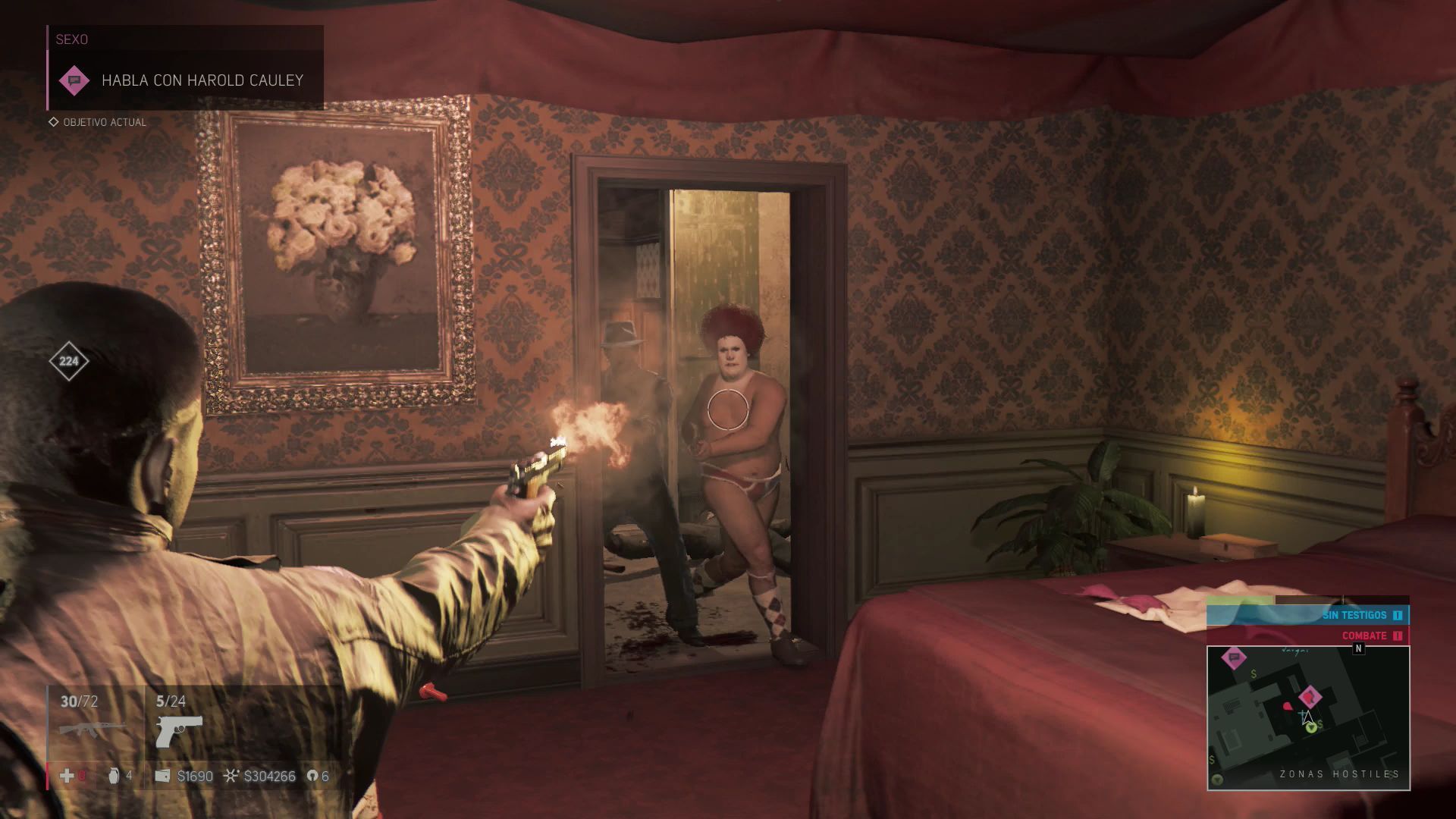 Cuando hayas causado los daños necesarios vuelve a hablar con Harold Cauley para conseguir la localización de Harry Robichaux, el "Guapo". Este objetivo se encuentra en un local de prostitución, es una zona con mucha seguridad por lo debes avanzar con mucho cuidado. Harry se encuentra en el cuarto del fondo de la segunda planta, no intentes subir a por él directamente o te verás acorralado.
