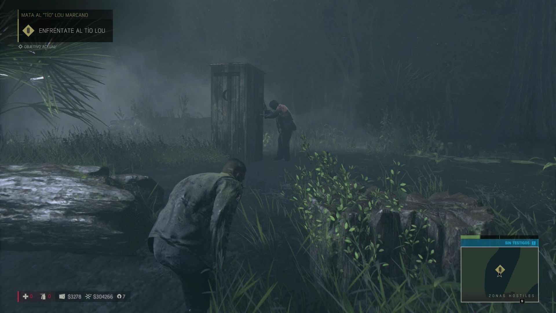 Tras la siguiente escena tendrás que perseguirle por el pantano. Cuando llegues a la letrina del fondo rodéala y agarra a Lou Marcano para acabar con él.