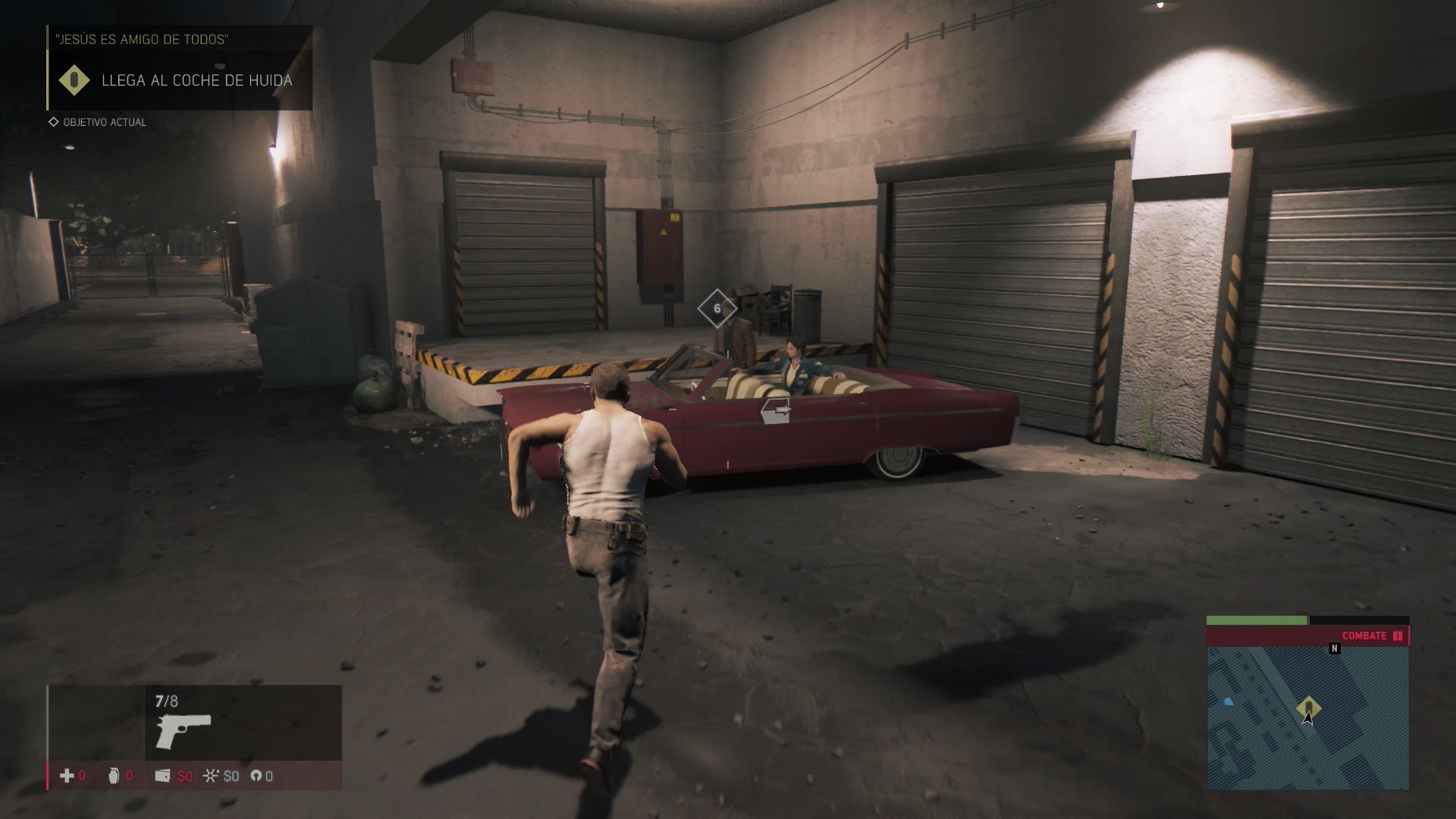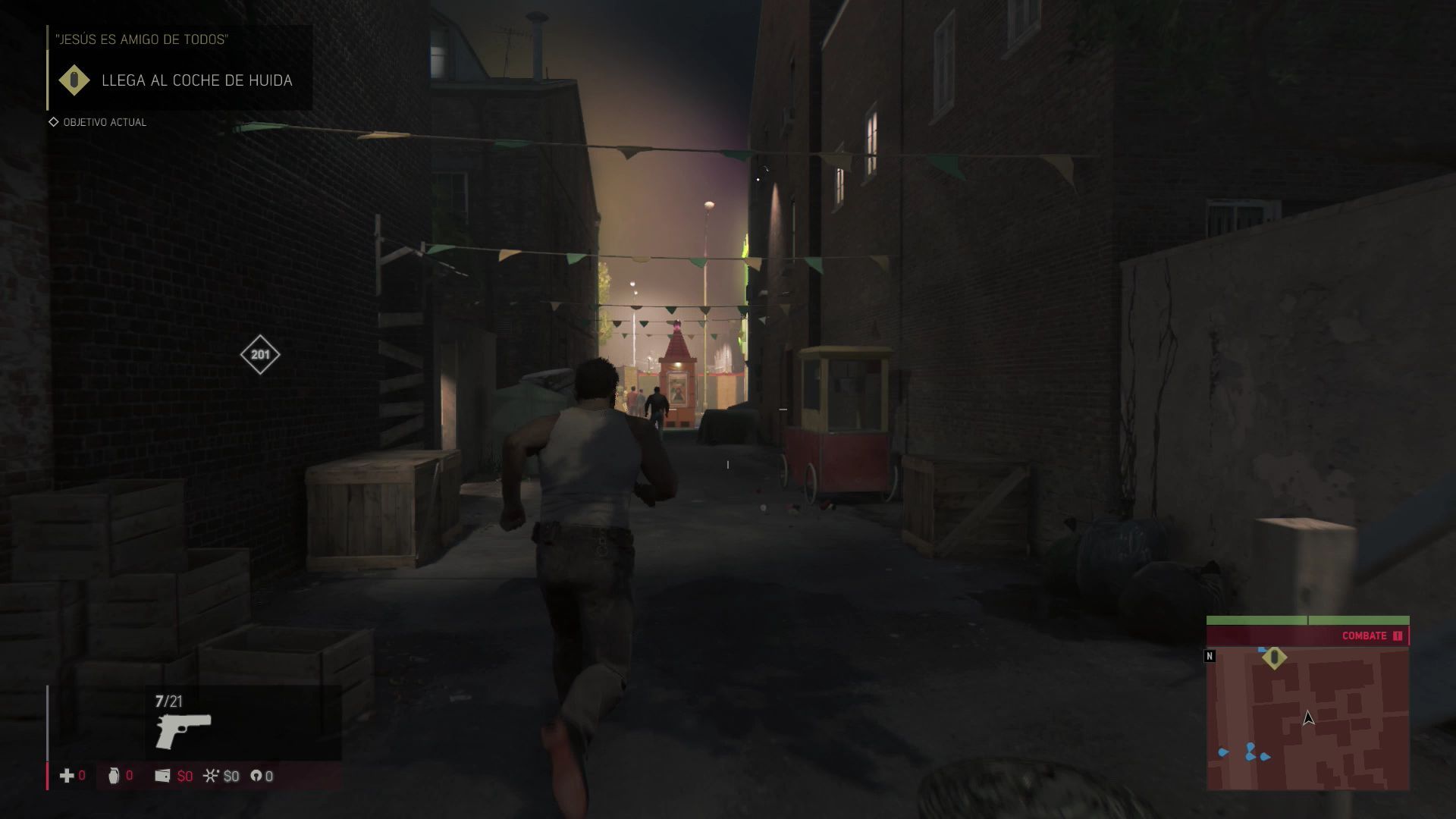 Tras la escena te encontrarás solo y tendrás que huir de la policía por varios callejones y un cementerio para terminar saltando por encima de una valla y llegar así hasta el coche de huida.