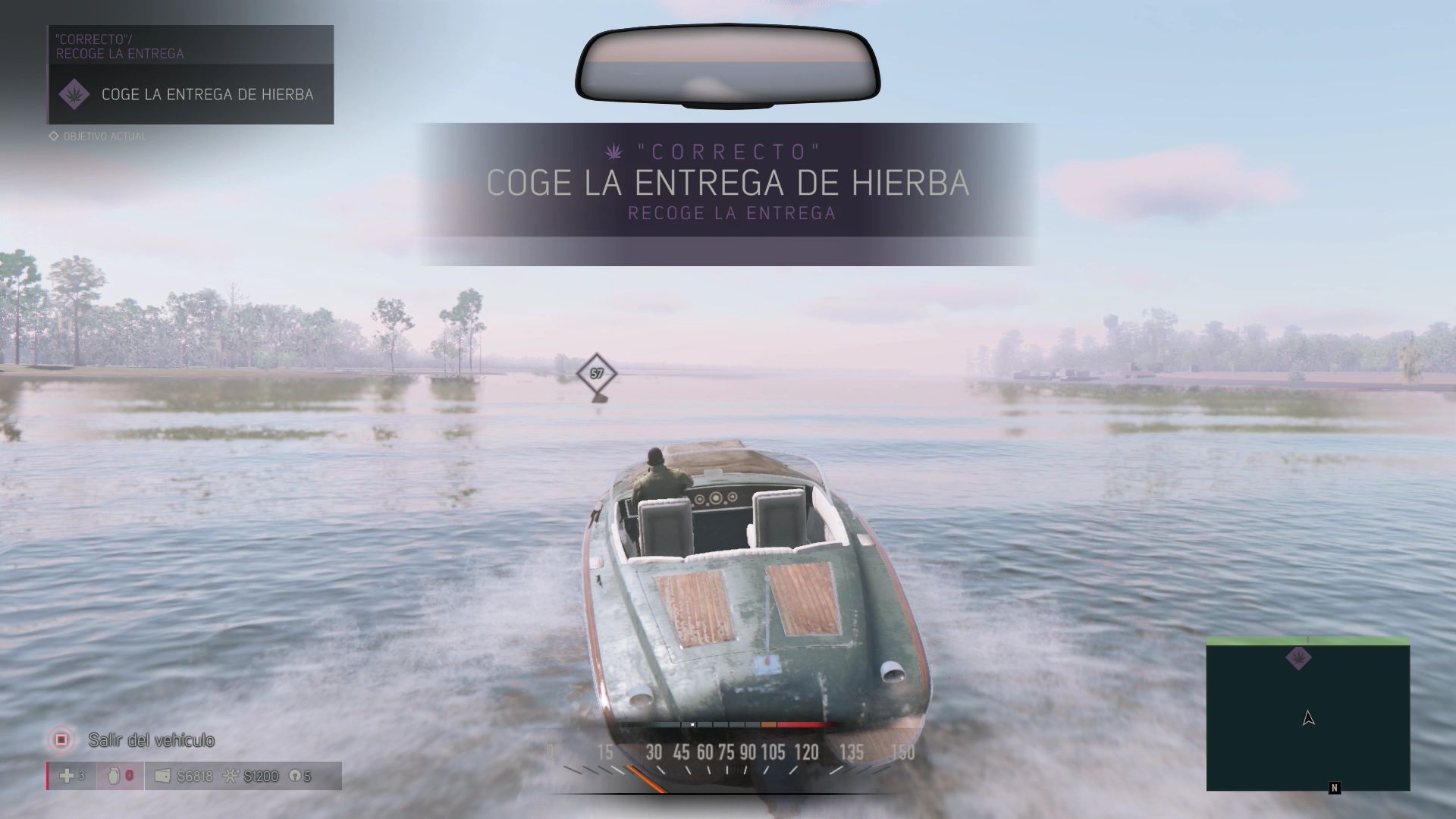 La primera parte de la misión siempre consiste en conseguir una lancha para recoger unos fardos de hierba que dejarán caer en algún rio o también es posible que la lancha ya tenga los fardos y no tengas que recogerlos.