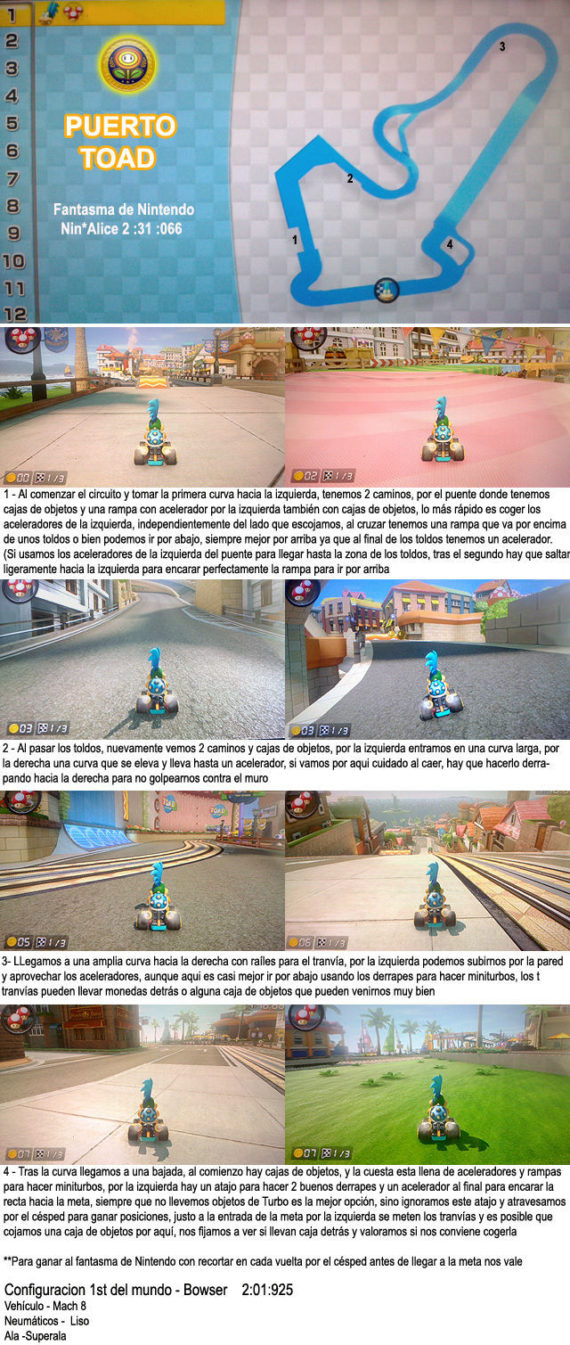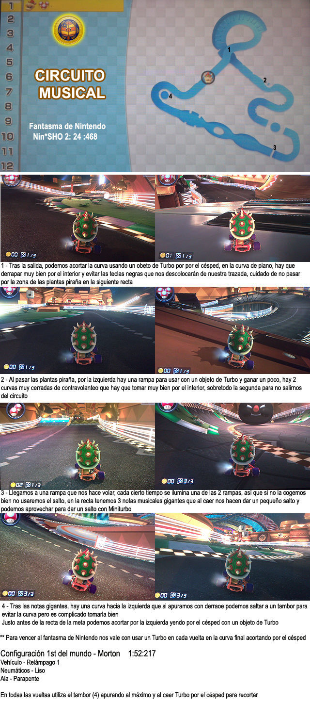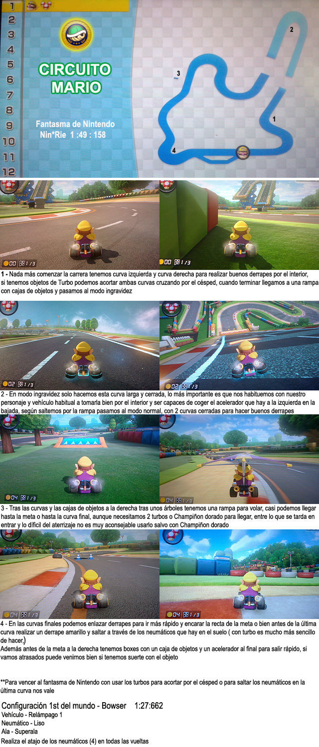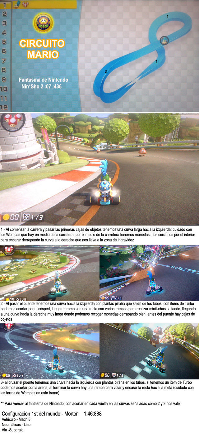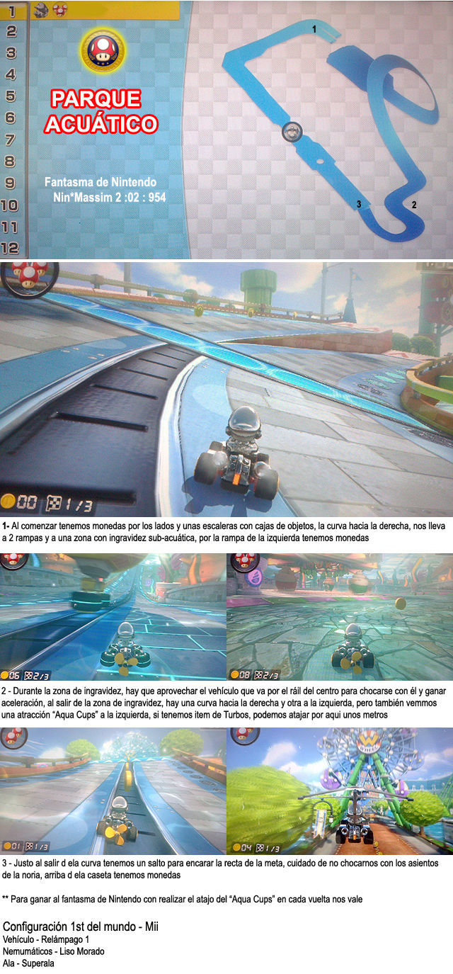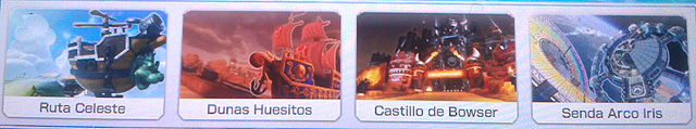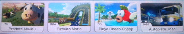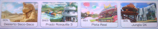 En total hay 32 circuitos divididos en 8 copas diferentes, 16 circuitos nuevos y 16 circuitos retro sacados de las versiones de Super Nintendo, Nintendo 64, GameCube, Nintendo DS, Nintendo 3DS y Wii.