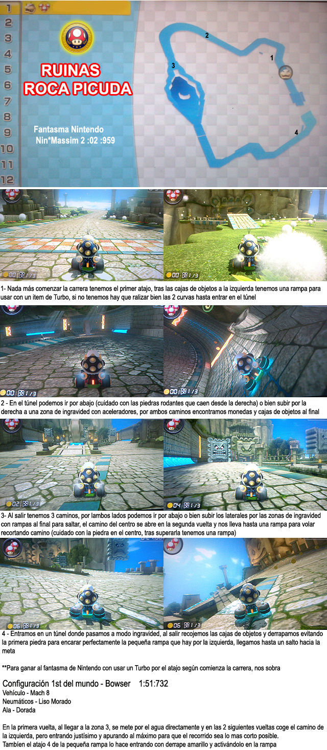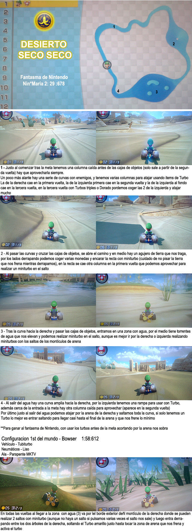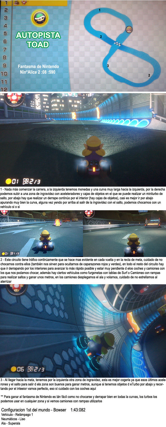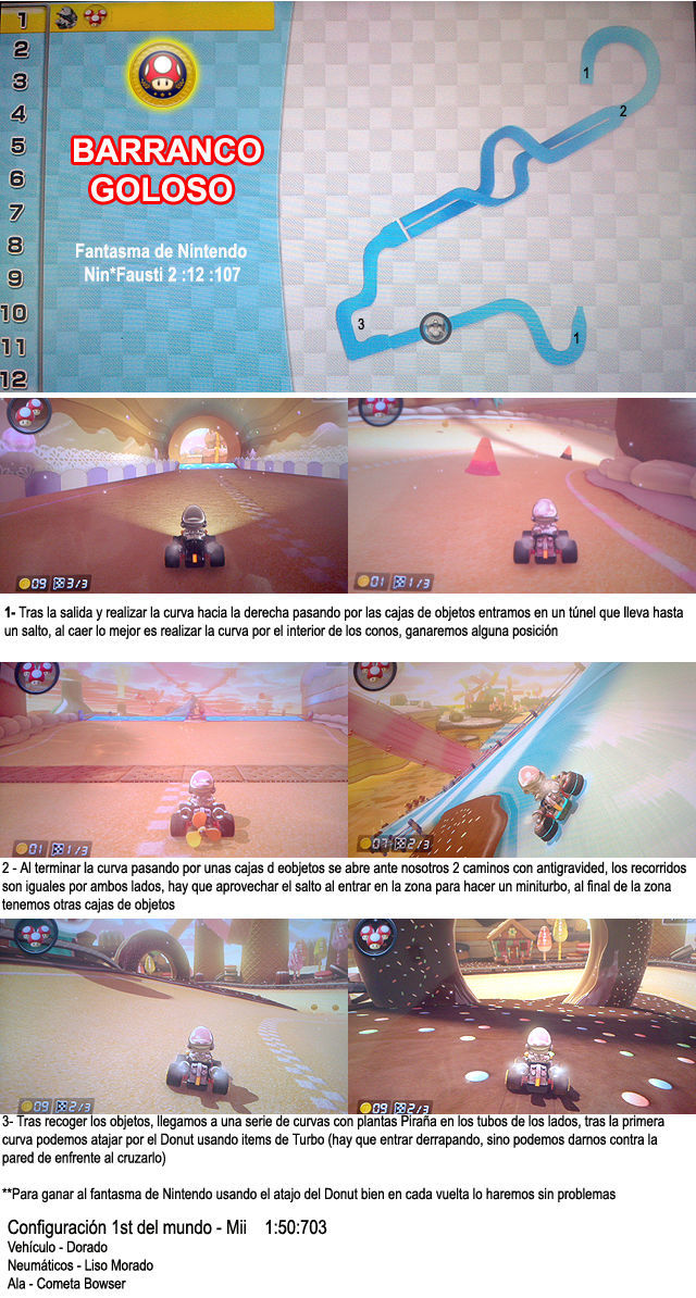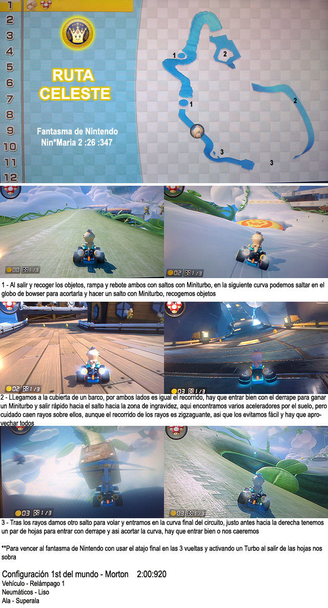 En total hay 32 circuitos divididos en 8 copas diferentes, 16 circuitos nuevos y 16 circuitos retro sacados de las versiones de Super Nintendo, Nintendo 64, GameCube, Nintendo DS, Nintendo 3DS y Wii.