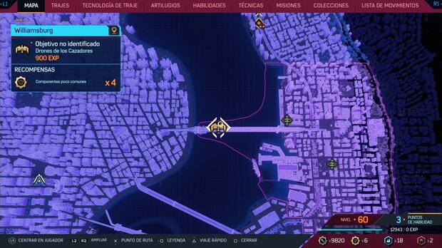 Marvel's Spider-Man 2 te propone una serie de actividades catalogadas en Misiones que puedes realizar en cada uno de los distritos. Se trata de misiones secundarias por norma general fáciles de completar. Una de ellas son los 8 objetivos no identificados, una actividad exclusiva de Miles que consiste en cazar unos drones que se activarán cuando completes Mis propias alas. En este caso, se trata simplemente de localizar y perseguir drones en puntos concretos de la ciudad.