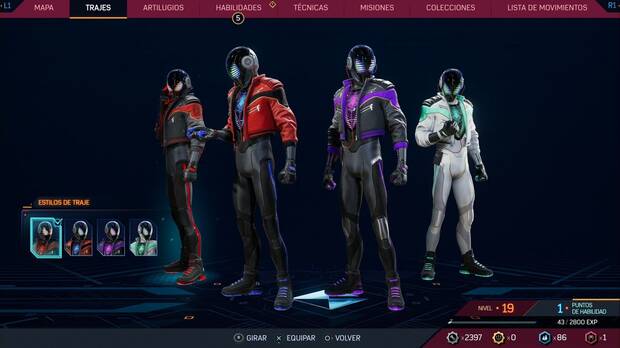 - El traje de Cruzando el multiverso no tiene estilos seleccionables.