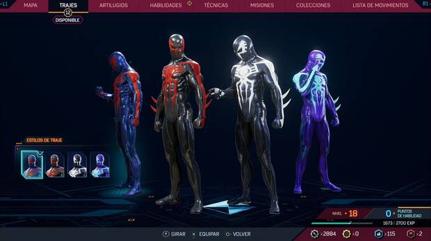 Recuerda que los estilos requieren materiales una vez fabricas el traje y basta con mantener el botón Cuadrado sobre el atuendo desbloqueado para conseguir sus estilos y que basta con desbloquearlos una vez para tener siempre los cuatro estilos.