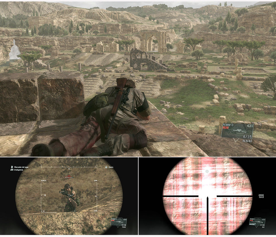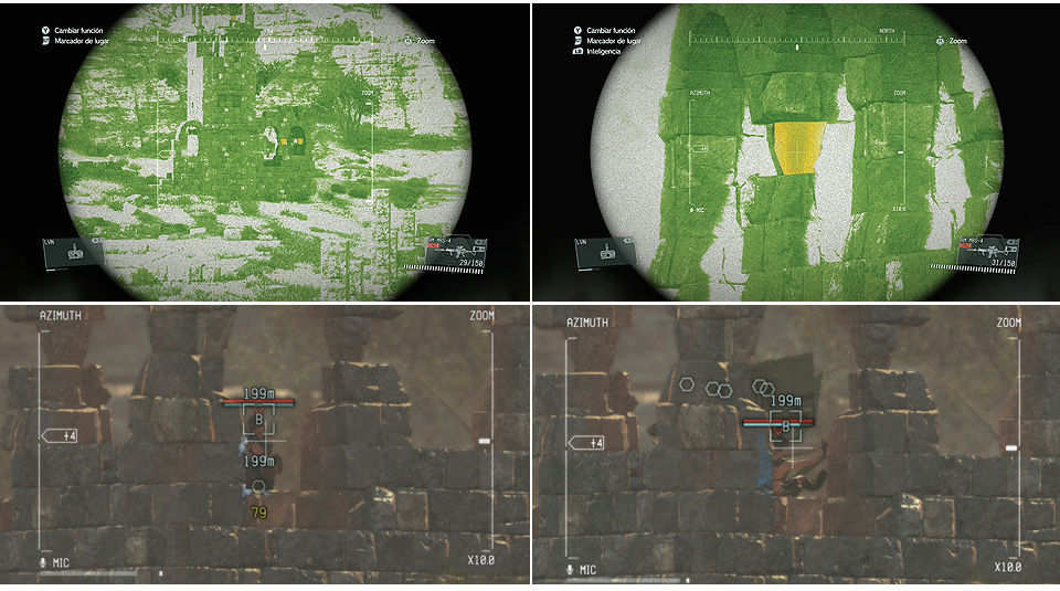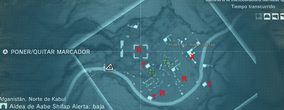 Las marcas en el mapa con T son torres que podemos escalar usando las grietas que tienen para tener una buena visión elevada del terreno, pero cuidado, igual que tenemos esa ventaja, tenemos la desventaja de que si estando arriba Quiet nos impacta podemos tener la mala suerte de caer hasta abajo y lógicamente morir.