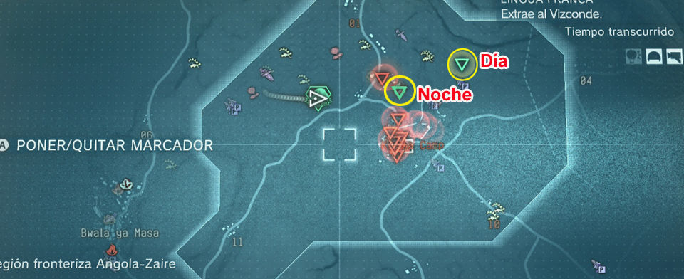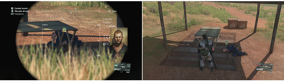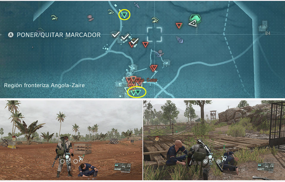 En el mapa se marcan sus posiciones, el primero lo encontramos al Noroeste del campamento, es el primero al que interroga. El segundo ya sabemos que al comenzar la misión le vemos pasar cerca del interprete mientras le trasladan a las celdas al lado del edificio central del campamento de Kiziba, el tercero esta ya en esta posición. Podemos cumplirlo rápidamente conociendo sus posiciones si no vamos a realizar el objetivo opcional 7.