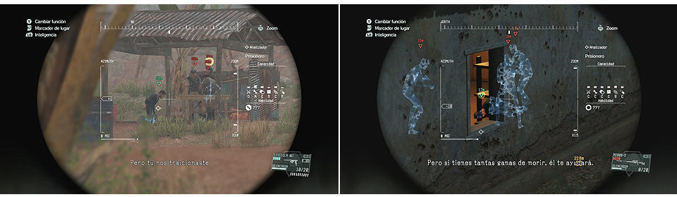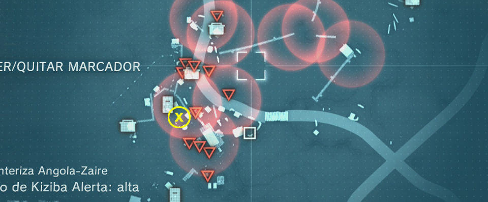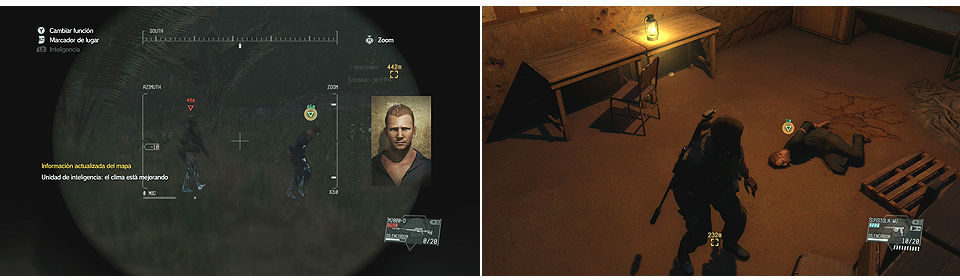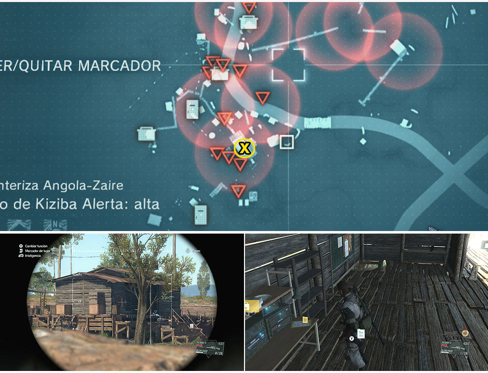 También en el edificio central del campamento encontramos un archivo de inteligencia que nos detalla la posición de los prisioneros, mucho cuidado con la cantidad de enemigos que hay en el campamento de Kiziba y con todos los puestos que hay a su alrededor, hay que ir con mucho sigilo para no ser detectados en esta misión y mucho cuidado moviéndonos por los alrededores con los soldados que patrullan.