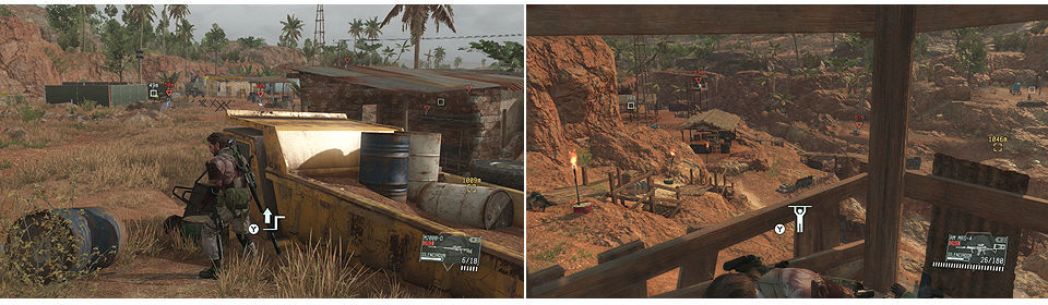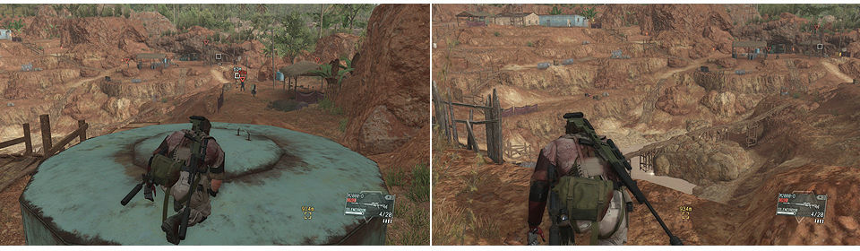 Yendo por el este encontraremos menos resistencia aunque también es mas abierto y tenemos más posibilidades de ser localizados, cuidado con los enemigos apostados en las torres de vigilancia.