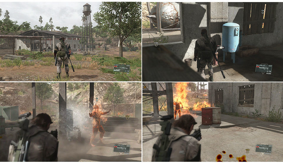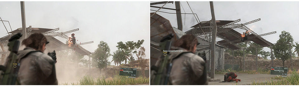 En la zona de combate, tenemos dos torres con un barril explosivo al lado, cuando pase cerca del barril, lo explotamos para que le caiga todo el agua encima, esto lo dejará inconsciente un rato. Igualmente dentro del edificio en construcción tenemos 3 pequeños depósitos de agua, igual, cuando esté al lado de uno disparamos para que el agua le deje aturdido. Cuando hacemos cualquiera de estas dos cosas vemos al Tercer Niño flotando sobre él (indispensable para conseguir el Objetivo Opcional 2).