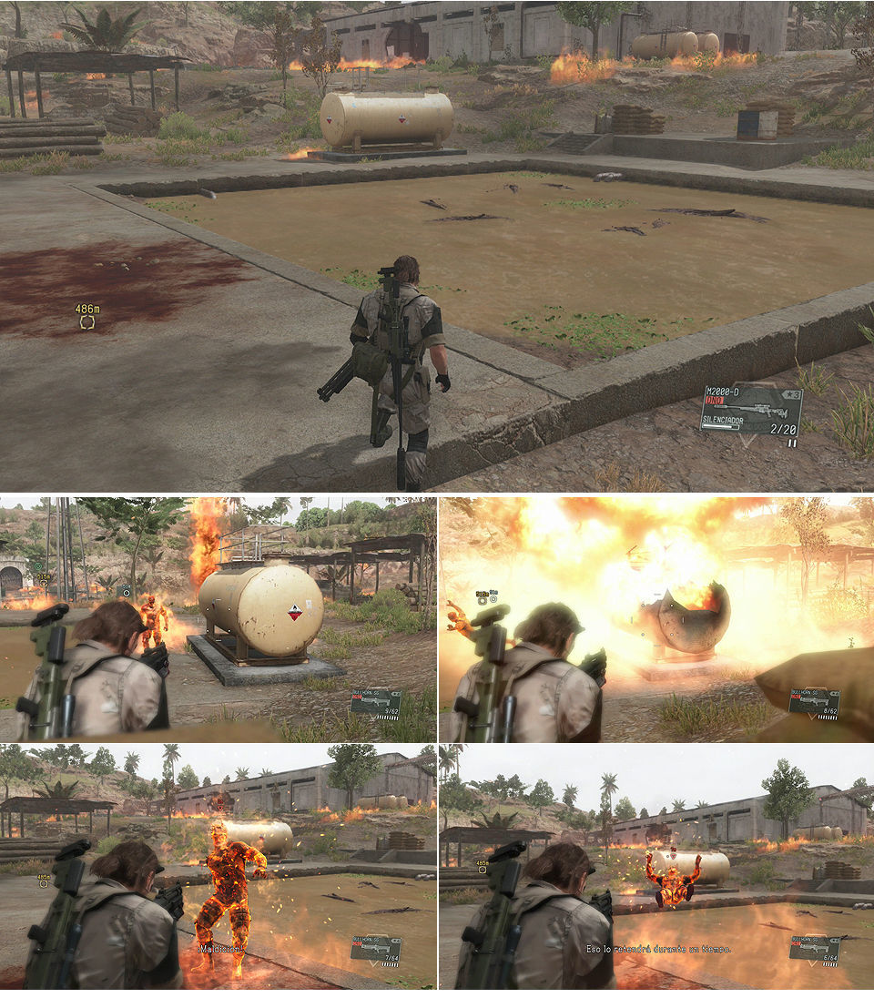 Otra manera de tirarle es usar el depósito que hay cerca de la piscina, para que la explosión le tire a la piscina, usando C-4 o algún arma para hacerlo estallar.