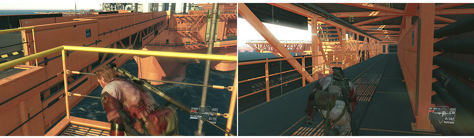 Para pasar de una plataforma a otra podemos pasar por debajo de las pasarelas, evitar el fuego enemigo y así poder coger desprevenidos a los soldados de la siguiente plataforma.
